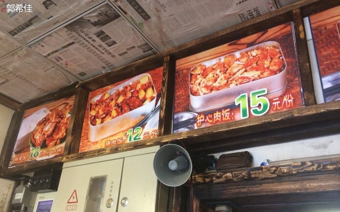 #肥瘦# 12元, 真的肥瘦相间啊,我喜欢这种,油都煮出去了,一点都不腻,拌饭吃,老香了,还不咸,味道刚刚好。就是貌似肉不太够,我吃了全部的肉和,一半的饭,配的酸菜汤,超级酸,算是解腻吧,还有咸菜条。我吃饭不咋配咸菜,喜欢靠吃肉饱。 #护心肉# 15元,全是瘦肉,主要是老公吃,他吃了一次之后,又自己去吃了一次鸡肉饭,是熏鸡的那种感觉的,应该他也认为这家的东西很好吃。 这家也就几种盒饭,价格都在12-18元,经济实惠。