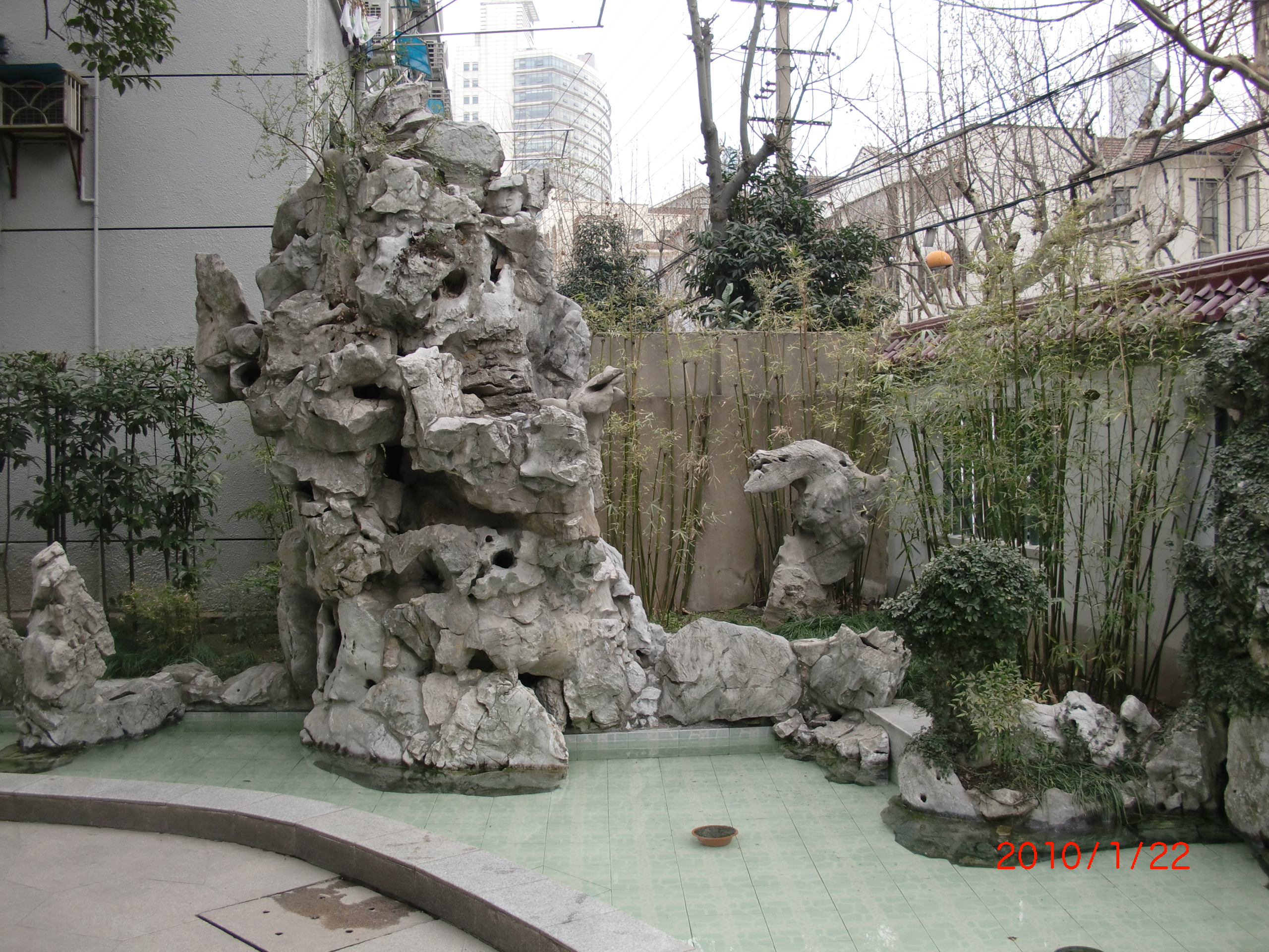 绍兴路就是一条不长的幽静的马路。 绍兴公园也很静,很袖珍。 是戏曲艺术主题公园。 原来据说是棚户屋区,拆掉后建成的公园。 公园真的不大,但较精致。 门前的假山,公园里的修竹、水、盆景、京剧脸谱,染上了绍兴路的文化气息。 公园中间一棵较大的松树带来不少绿荫。 也有一些简单的健身设施。 这里老人居多,三三两两闲坐、下棋,气氛很安宁。 人到了这里,心都会静下来。 偶而会在里面坐坐,看看老人悠闲的姿态,看看蓝天白云,生活还是美好的。