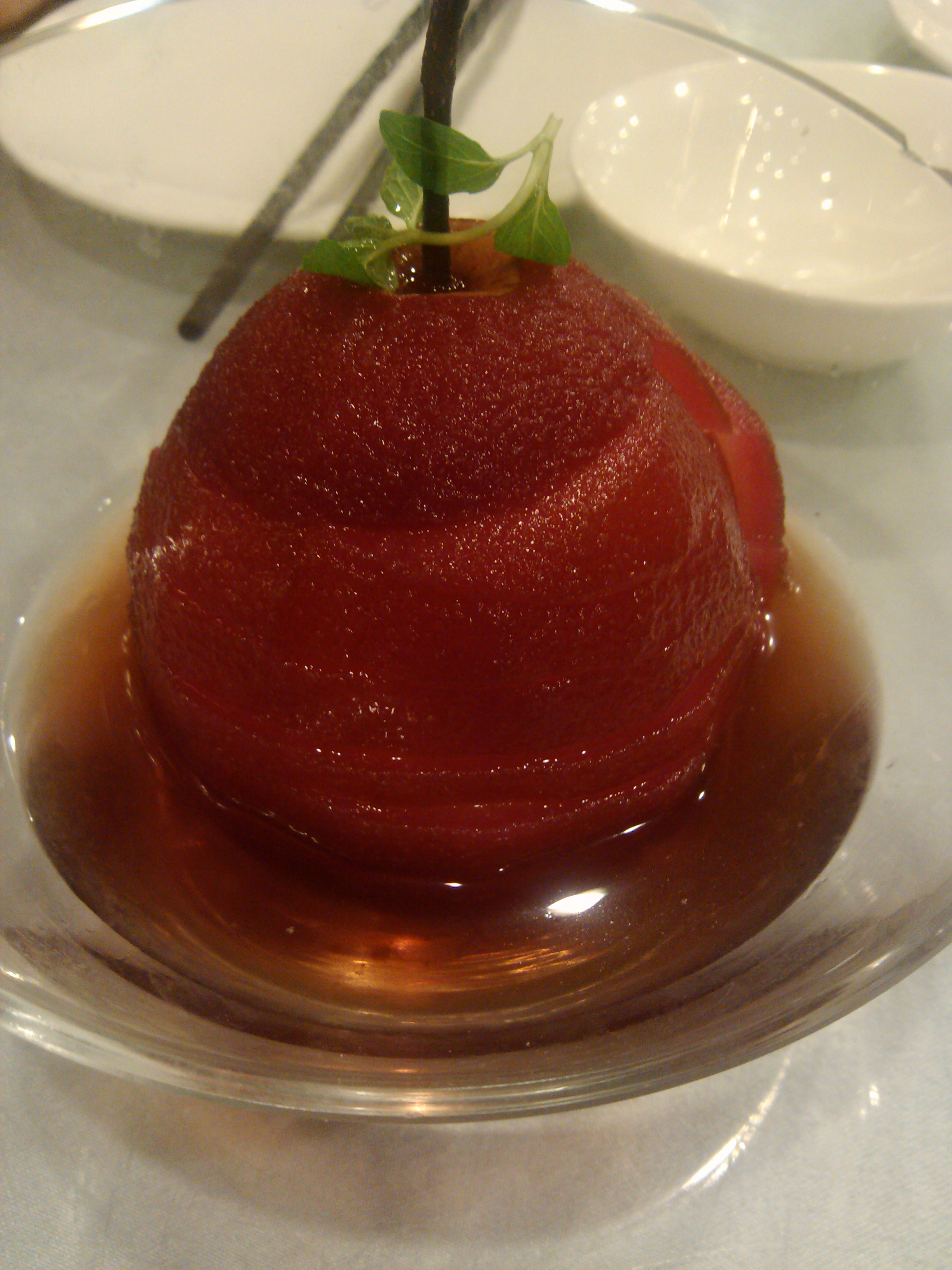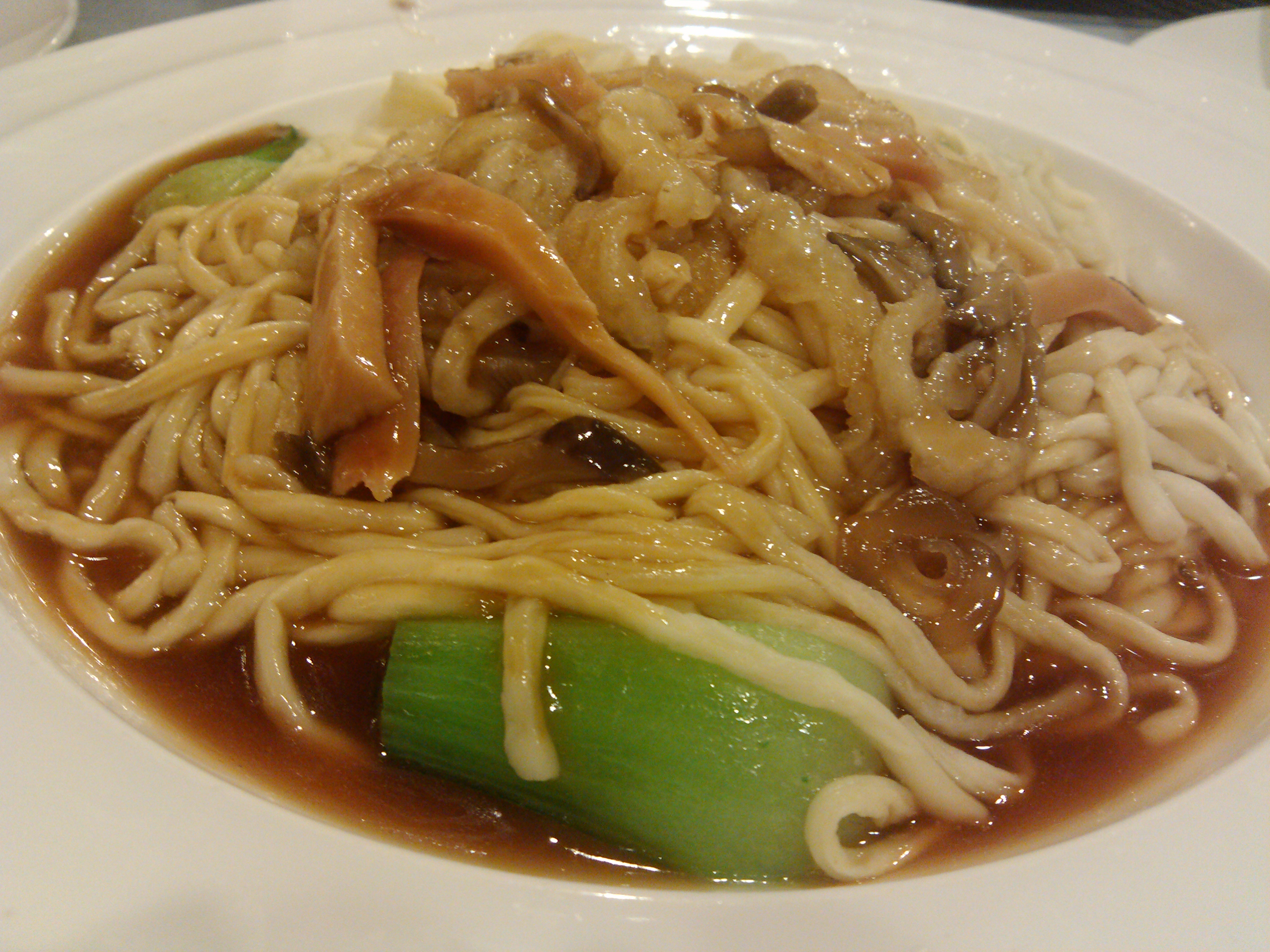 本来要去的餐厅位置改变,懒得再折腾,搜寻附近有这家菜馆,口碑甚好,于是前往。其实宝轩集团在天津还是很有名的,有很多家分店,菜品以海鲜和肉类为主,口味上偏甜。 这家店的布置古色古香的,大厅很宽敞,貌似很多婚宴都选择这里。布置很精致,也很干净 里脊炒黄瓜丝很清爽,很受大家喜欢,菜的色泽很好,味道也很好。 大蒜烧肉酱香口味又微甜的,口感丰富,吃起来很香。价格也适中。肉和菜搭配合理。 鳕鱼爆鲜虾比较清爽的一道菜,食材新鲜,鳕鱼和虾仁都很好吃,虾仁略少了 腊八蒜烧蹄筋牛蹄筋有点太软了,没有嚼劲,而且还是过于甜,过于油了。而且这菜量小,性价比不高 糖醋黄鱼推荐菜之一,但是我觉得一般了,鱼肉倒是鲜嫩,也没有刺,但是实在太甜了,而且淀粉挂的过厚,感觉很腻。 红酒雪梨是我吃过的造型最美的一个红酒雪梨,晶莹剔透的。其实味道就还一般了,基本无红酒味,是香料兑出来的味道.店里的驰名菜之一。 三鲜伊面,服务员推荐的时候我其实蛮不在意的。以为是广东那种类似方便面一样的伊面。但是吃到嘴里就觉得很好吃了。首先是面条,是类似牛筋面一样的口感,很劲道,中间是空心的,所以很有弹力。再者就是汤汁,应该是用了鲍鱼汁,搭配了竹笋、香菇、杏鲍菇等,非常的鲜美。超级好吃。不过量不算大。 菜品价格适中,二三十元的菜品居多。从摆盘到味道很很好,既适合宴请又适合日常用餐,强烈推荐。