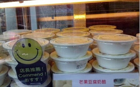 在“韩金婆婆豆腐酪”店里可以品尝到滑嫩可口的豆腐奶酪,一入口就会滑进去,恨不得吃很多。还有那种包装好的,包装盒上的婆婆很可爱,看着很舒服,从外表看起来就像是布丁果冻,很适合带给朋友。店铺在安平最热闹的街上,很好找,因为客人很多呀。