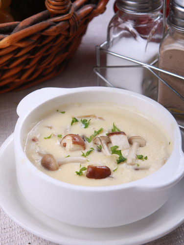 奶油蘑菇汤,听名字就觉得是一道非常不错的菜。店内装潢高贵典雅,格调大气,餐厅外面也是景色优美