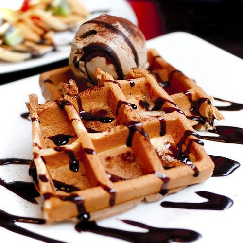 店内整体风格可爱,还有蘑菇形状的桌子,感觉真的很萌啊!坐在蘑菇桌上吃香香甜甜的华夫饼,他们家的华夫饼还配有爱心形状的冰激凌。华夫饼的外层烤的硬硬的,其实是薄薄的脆脆的一个外壳,搭配外层的冰激凌,甜甜的,甜中带着冰激凌的凉爽。