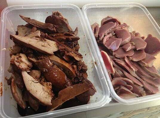 中午不知道吃什么 最后决定吃烤鸭吧 给阿三烤鸭打电话 现在可以外送啦激动 一只起送 组织了部门同事都吃 不多久鸭子就来的 热的 很香 以前都是去门店买的 外卖还是第一次 很给力 还买了些叉烧和 鸭肝 同事们一吃都上了瘾啊 哈哈