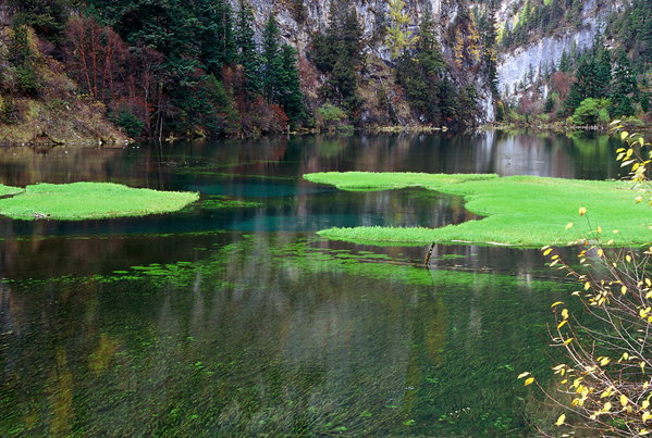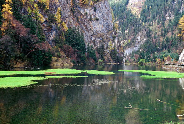 天鹅海不仅在看,更在于“品”。这里一般下午游人稀少,颇为喜静的人钟爱。一对外国情侣在湖边安坐,也不说话,只是静静地享受着这种难以言表的感觉。我多次来到湖边徘徊,品味着这份清幽。游人散尽的天鹅海,空灵静寂,一泓碧水,一帘幽梦,一幅诗画,一份心境。仔细回味,倒是觉得天鹅海阴雨天更有韵味,意境幽深,绝非有人说的没看头(如果弄上一群人吵吵闹闹地拍照留念,那当然是趣味全无)。湖上静得怕人,只有几只野鸭在水中自在地嬉戏,时而发出几声“嘎、嘎”的欢叫,空谷传幽,划破了沟里的宁静。天色向晚,冷雨霏霏中的空气湿润而清新,足以清心。我深深地呼吸了几口,也学着古人长叹一声而去:“天鹅一去不复返,白云千载空悠悠。”