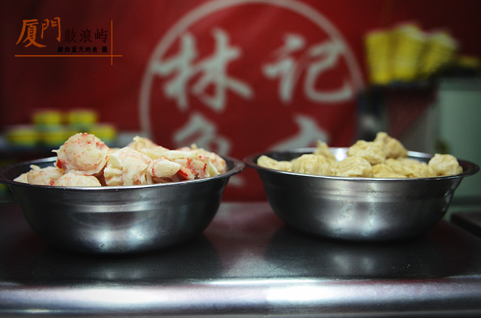 再来说说林记鱼丸,曾经在一个美食栏目看过它的特辑,心里一直惦记着。这次来鼓浪屿竟然没想起来这茬儿,走着走着突然遇到,这才回忆复苏。然后就是梦想照进现实时的莫名兴奋。 林记到现在是第几个年头了,我不知道,只记得曾经从电视镜头中看到经营者并非现在这个,老奶奶素手做鱼丸的摸样莫非只是幻觉吗?我不知道。鱼丸不如从前大,价格却一定涨了不少,入口没有想象中弹,但至少还能吃出马鲛鱼的天然鲜味,鱼丸中间的肉馅也是鲜甜的。或许是期待到了极致,有些非理智的凭借想象提升期望值,落差存在也就成了必然。成功的道理很简单,就是坚持!听起来越简单的,做起来越难。岁月流逝,终站在原地不改初衷,此为传承。能做到者,太少。林记鱼丸的院子中还有几家摊位,有卖海蛎煎、海蛎饼、春卷、扁食等等。