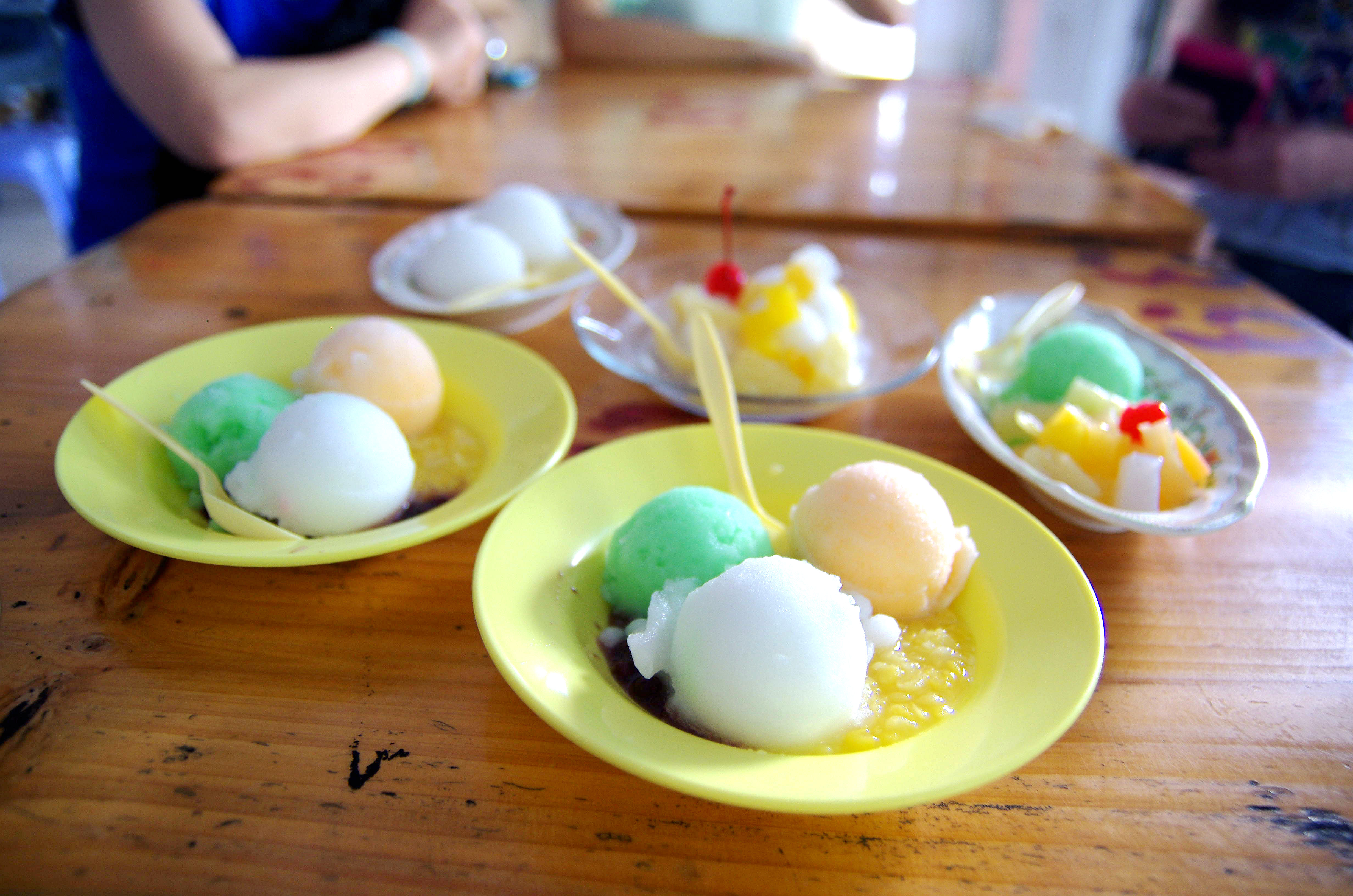 我们6个人合计吃了29元。味道方面可以选择白冰、薄荷、香橙的口味简单的彩色塑料圆盘装盛,简易塑料勺,红豆绿豆或者罐头水果上铺上雪球,那么就是南海冰室的出品了。价钱很平民化,4元有一个单球,7元能有3 球了。味道方面可以选择白冰、薄荷、香橙的口味。我们6个人合计吃了29元。