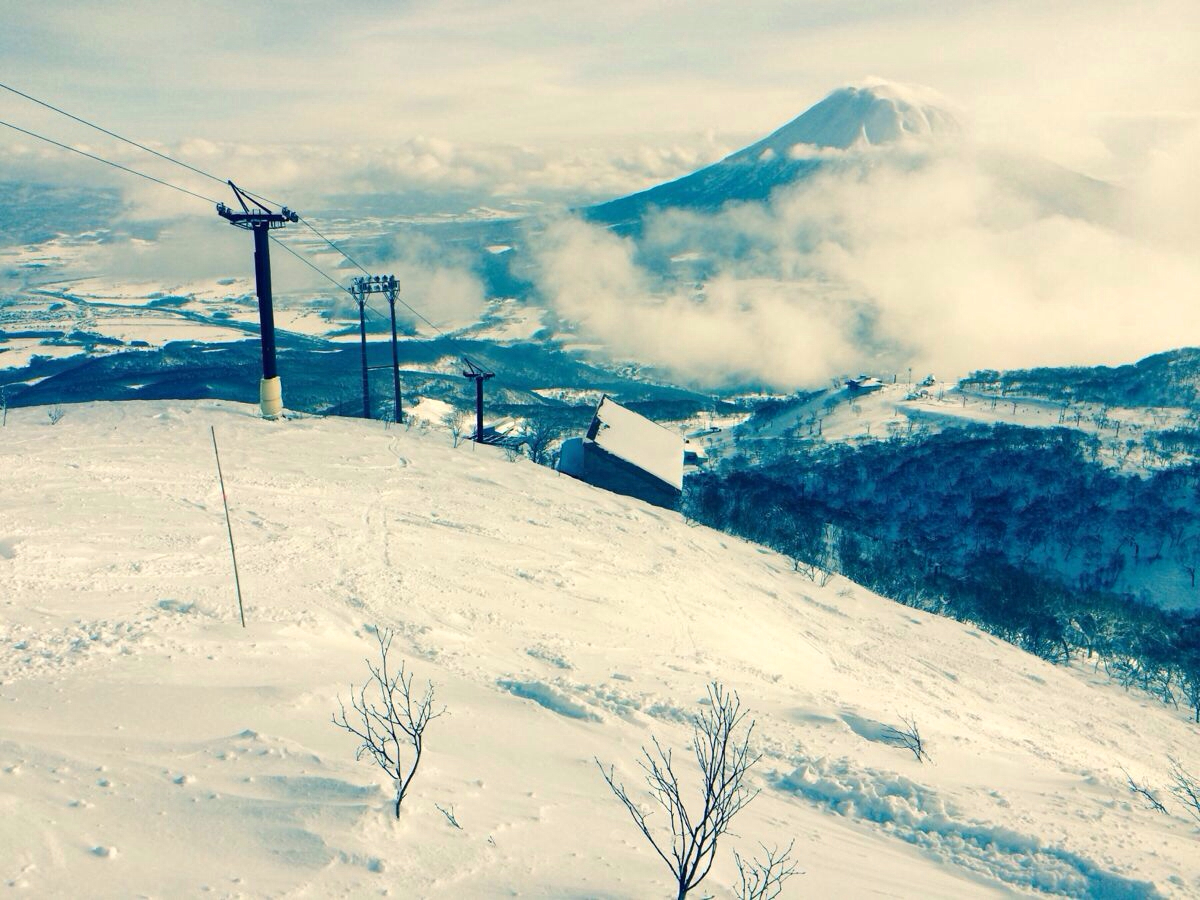 高点,只能独行了。这是高手去的雪道。远远山景很美。从一个山头,看羊蹄山。