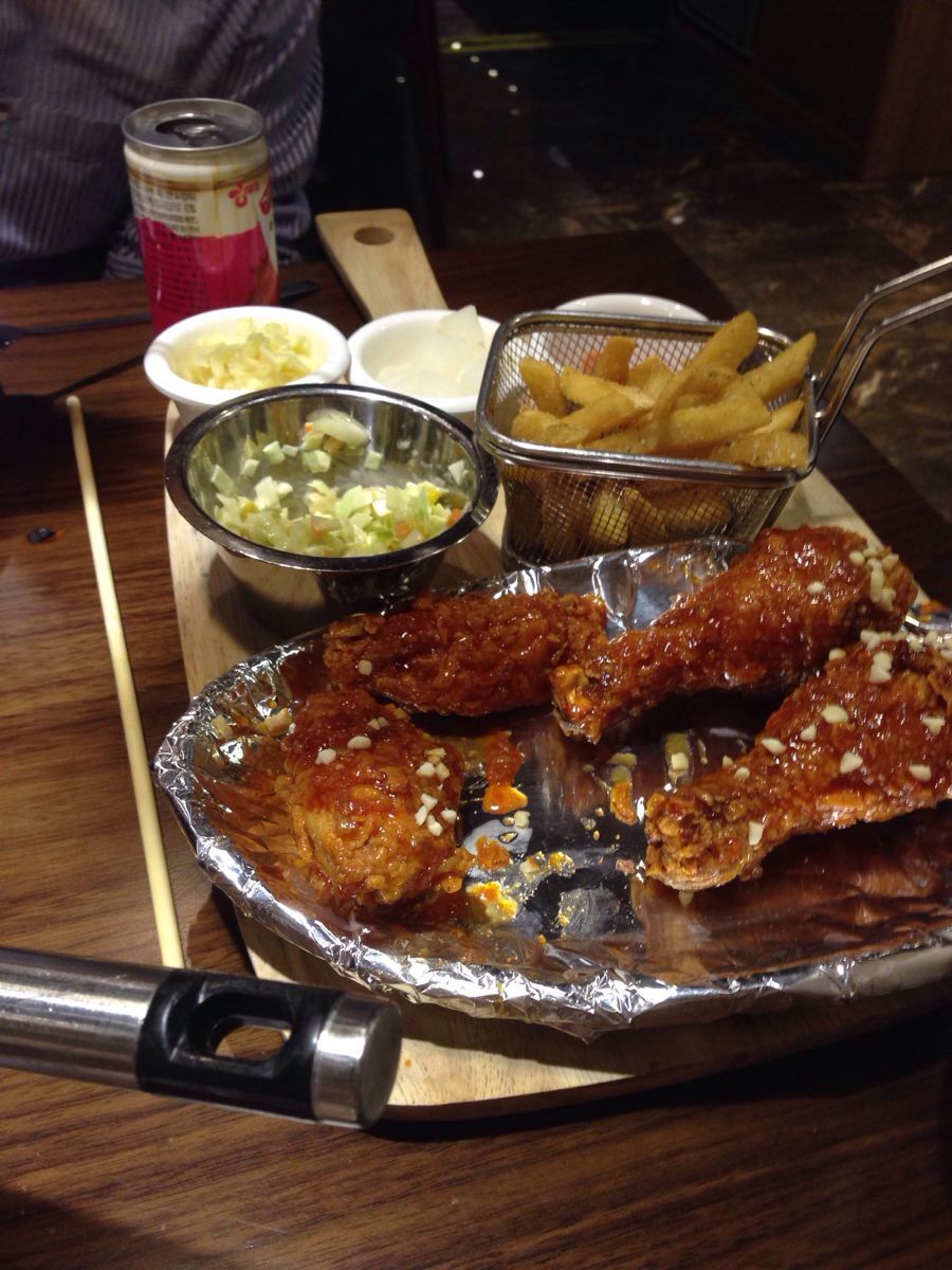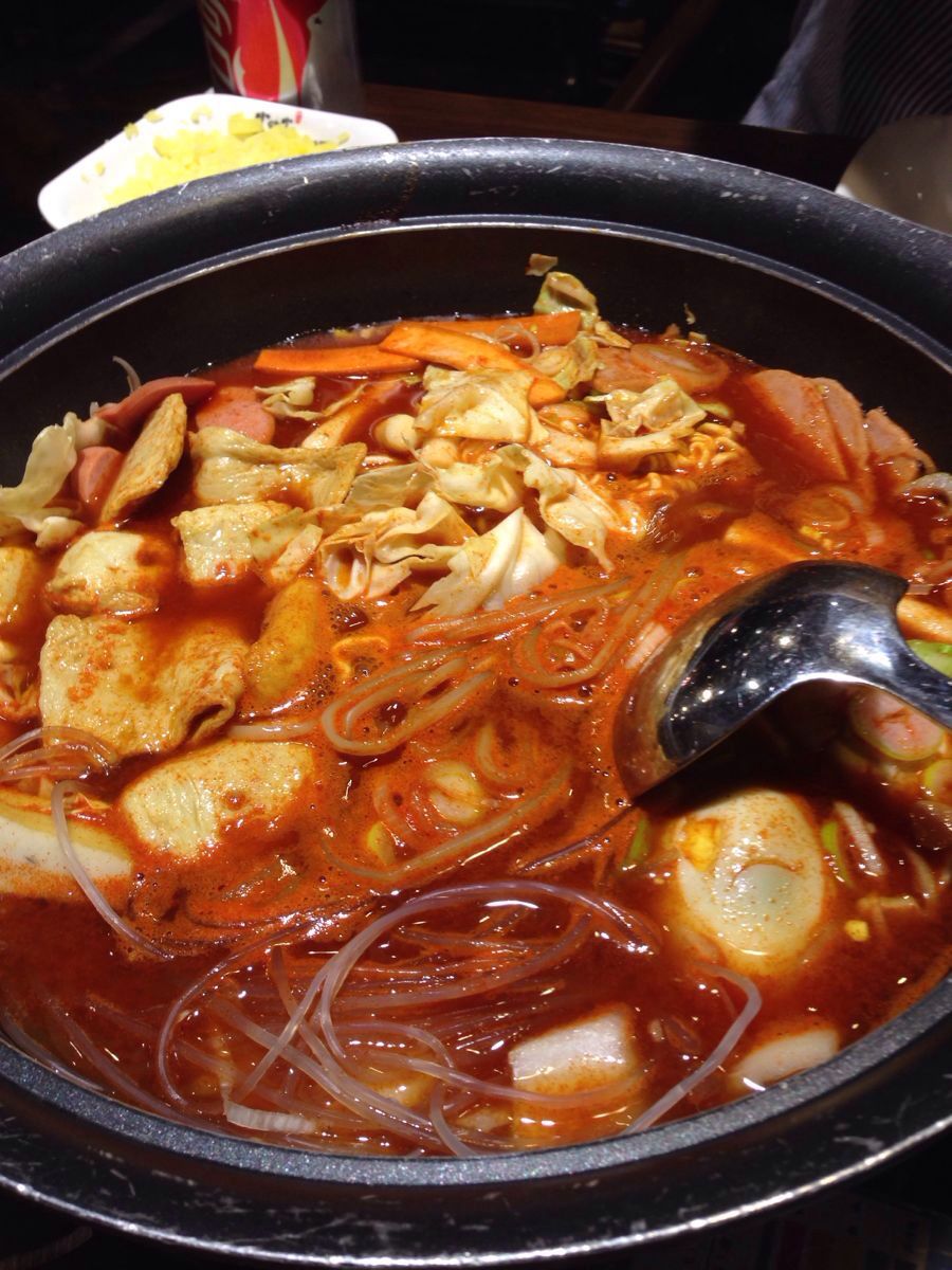 东西很好吃,但是种类比较单一,只有年糕火锅,部队锅,芝士pizza,炸鸡。口碑很好的店,慕名而来口碑很好的店,慕名而来。东西很好吃,但是种类比较单一,只有年糕火锅,部队锅,芝士pizza,炸鸡。蔬菜类的东西基本没有。火锅量很大,两人份的够三个人吃。炸鸡原味的很像,红豆沙冰超级推荐!