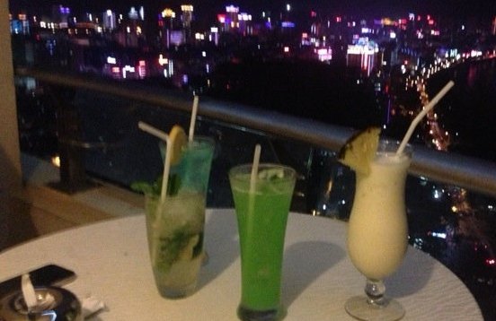 超棒的酒廊!在福朋喜来登的顶楼,晚上去的时候人很少,很安静。我们坐在了外面的小阳台上,阳台很小,刚好容得下我们四个人。酒廊面朝着三亚湾,还能看到三亚市区,吹着海风看着景色很惬意。酒的种类很多,我们四个人点了四种不同的酒,味道都不错,大家喝酒聊天看海景超舒服!