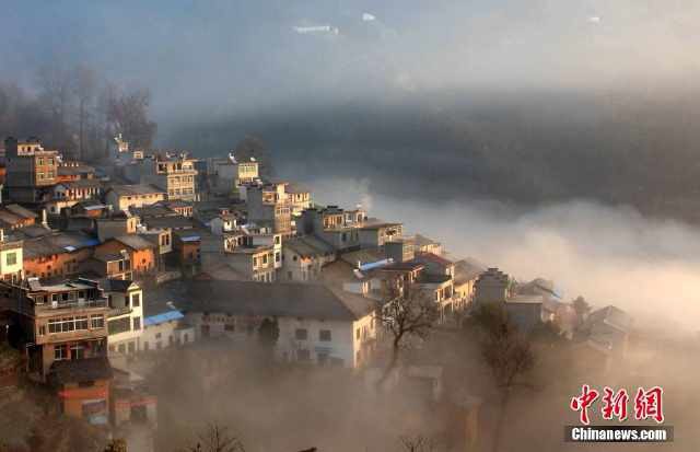 去的那天蜈蚣岭雨后放晴,出现云海。依山而建的蜈蚣岭古村落错落有致,在飘渺云海中若隐若现,宛如仙境。