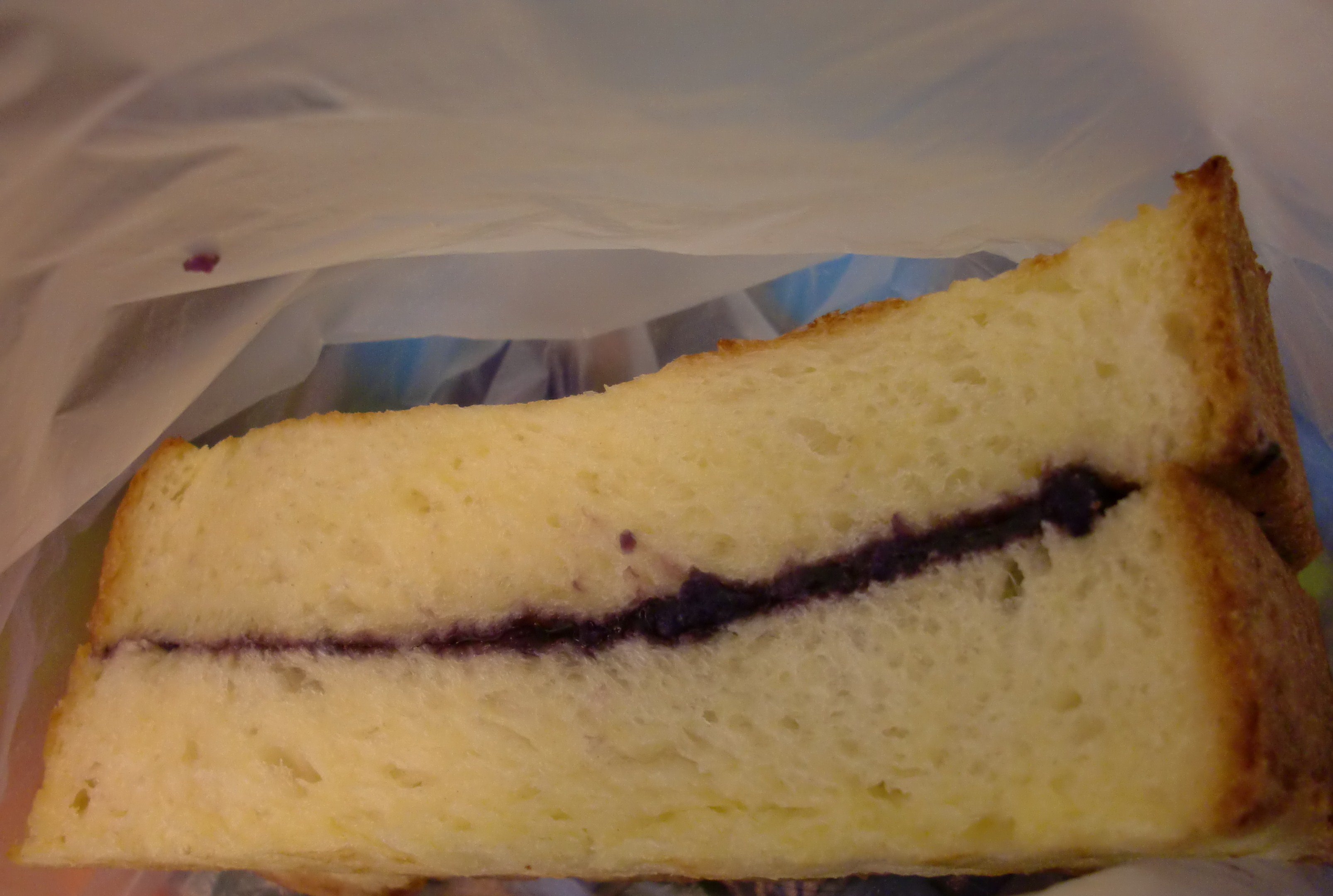 店内的员工真不少。 收银员专职收银,旁边还有一个员工专门装袋,倒是较卫生。 店不算大,烤箱占了一半的位置。 不断有新鲜出炉的面包。 面包柜里会标上哪些是新出来的。 门口的吐司台上方也有各种吐司新鲜出炉的时间,方便挑选。 每当有新出炉的面包,店员会喊一声,较趣怪。 面包的品种较多,还有不少三明治。看上去很新鲜,很诱人。 皇后吐司: 每片都是厚厚的一大片。 外皮有一点硬,较香。 里面非常膨松,柔软。虽然奶味不重,但口感很好。涂上花生酱一起吃,很美味,一片就吃饱了。 蓝莓烤方: 就象是烤过的夹着蓝莓的皇后吐司。这个与皇后吐司买重了。 蓝莓味道很正,较好吃。 核桃童话: 这个很赞。 形状很可爱,大大的半球形,真像童话中的蘑菇。 面皮软软的,蛋味和奶味很重、很纯。 里面的面包很软,核桃放了不少,一起咬下去,口感有软有硬,满嘴的香味。 面包是很好吃,只是较贵。