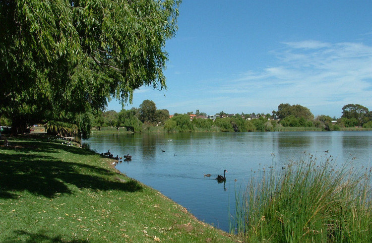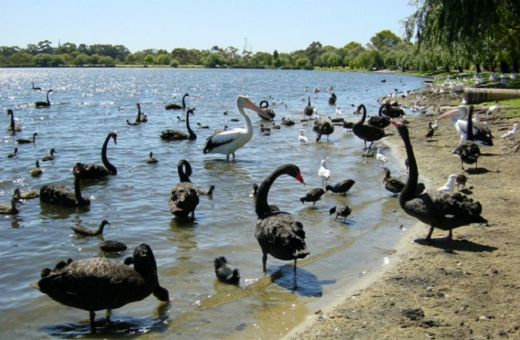 在一个社区中间,附近没有什么游人,只有环湖跑步和推婴儿车散步的本地人在一个社区中间,附近没有什么游人,只有环湖跑步和推婴儿车散步的本地人.好多黑天鹅阿,还有绿头鸭和其他水鸟,就在湖边休息.找个凳子坐下可以静静的观察它们,不知不觉时间就溜走了.