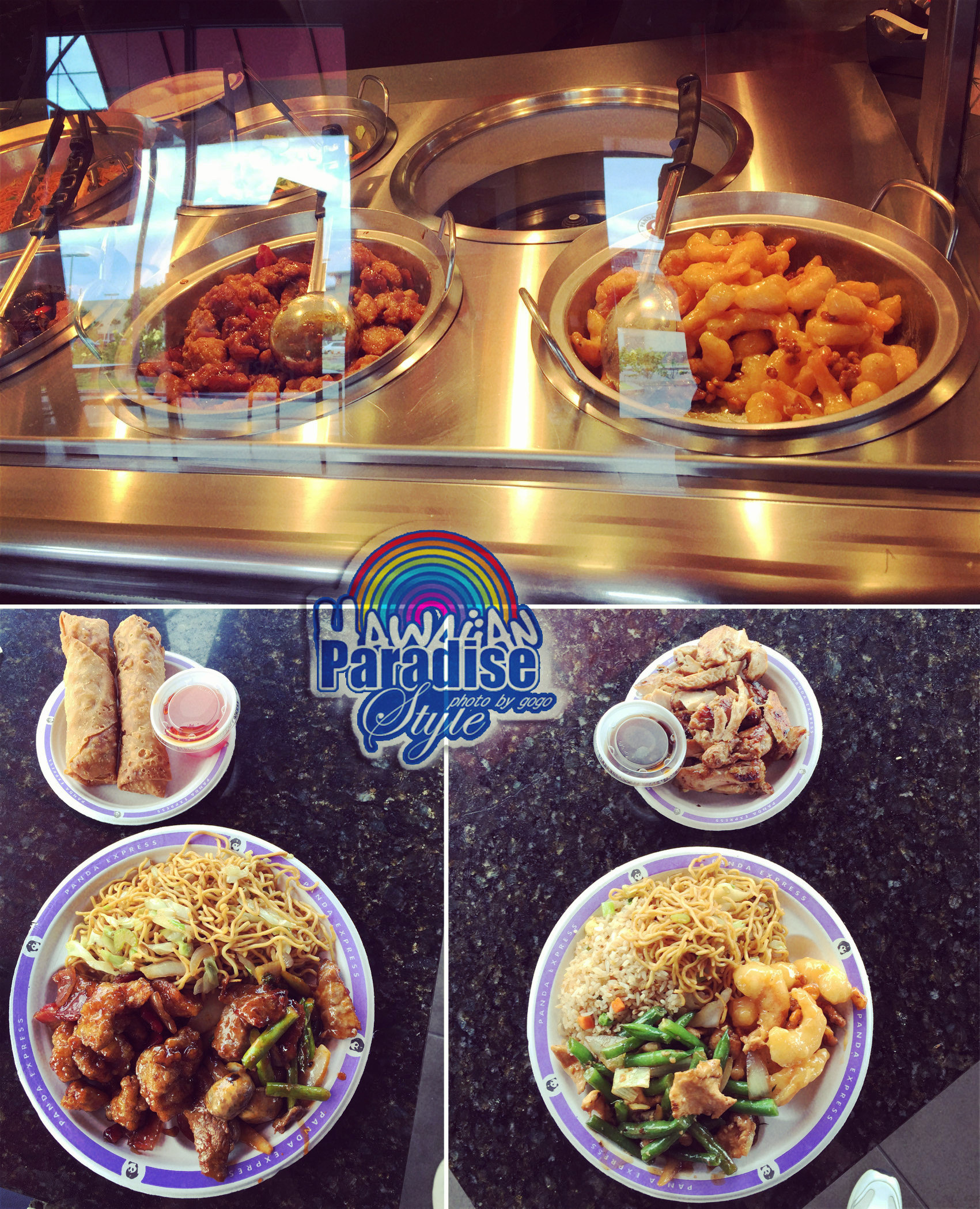 1.1的午餐真的很好选择,因为就那几家快餐店是开的,同样是元旦新年的缘故,所以不是啃汉堡就是吃中餐,汉堡留给了晚餐,哈哈,所以中午的午餐就选择了下图中的这家全美最夯的中餐连锁店“Panda Express”,是个适合老美口味的中餐,酸酸甜甜,蛮好吃的~!看店门口门上就贴有最新2014年夏威夷美食排行榜给出的最佳快餐餐厅殊荣哈~!
