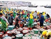 多功能渔港,各地港籍的渔船在此停靠卸货,可见各种不同的现捞鱼货在此抢先上市。