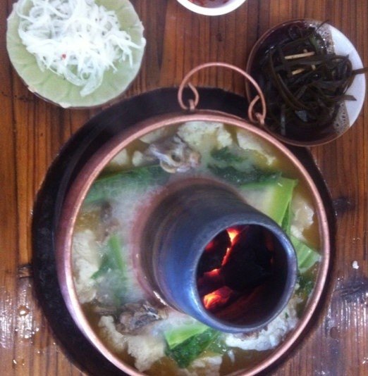 在当地人介绍下,选择了这家小店,在条小街上,不算很好找,我们到的时候才四点,就我们一桌客人,我们点了小锅,半份腊排骨和半份鸡肉,爽口的小菜,好吃的腊排骨和鸡肉,嫩嫩的豆腐。价格实惠而且服务员很热情,要比古城的饭店强得多!