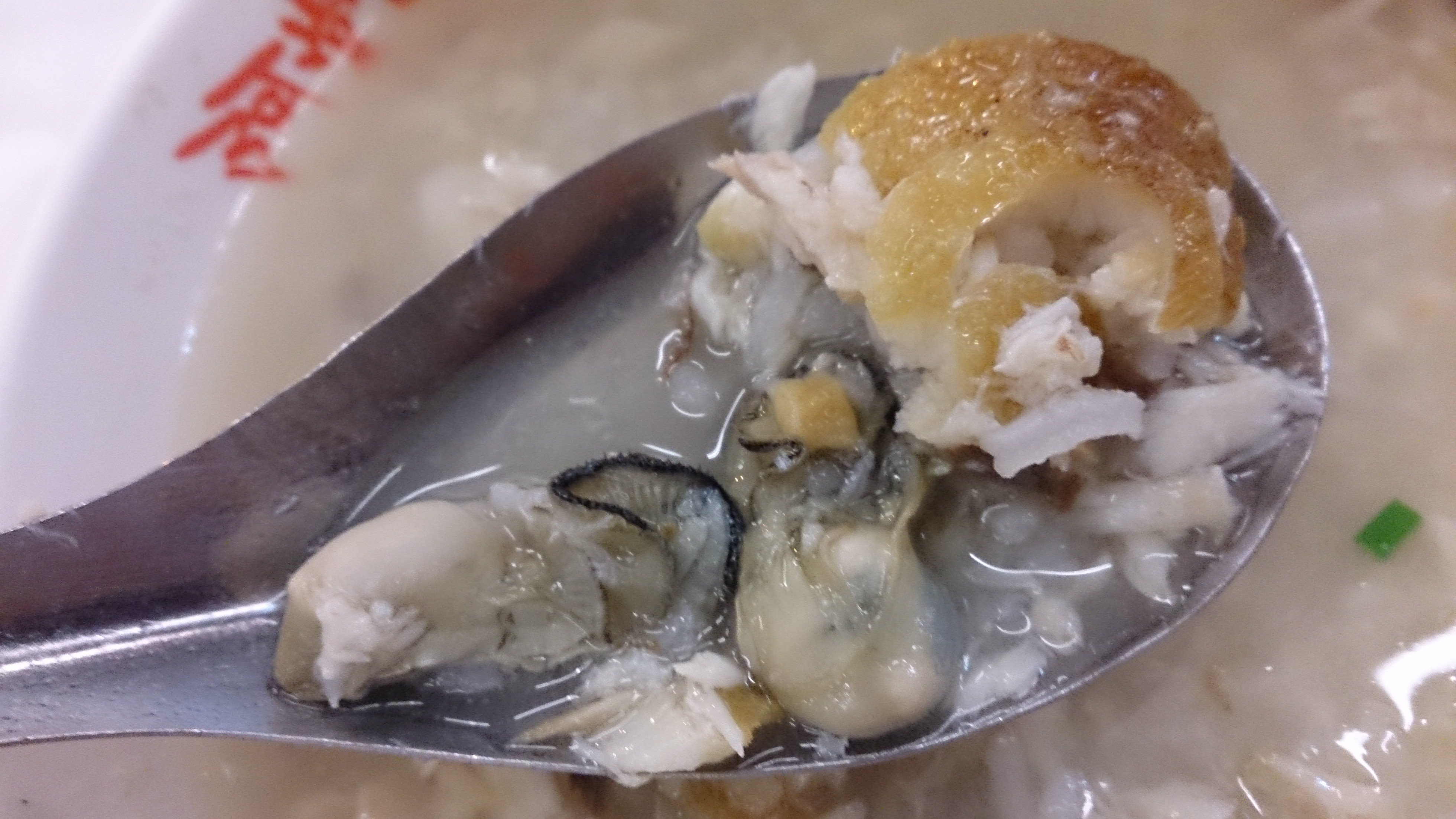 特地起早去吃的,5、6点的样子到那边,周围黑灯瞎火的,发现已经有很多当地人在吃了。 粥里面鱼肉很多,很鲜美,想点油条的,可惜油条还没到,就点了香肠配粥,台湾吃到的香肠都不错,里面都是肉。热乎乎的一碗粥下肚很舒服。 吃完天才开始亮起来,这才去拍了招牌。