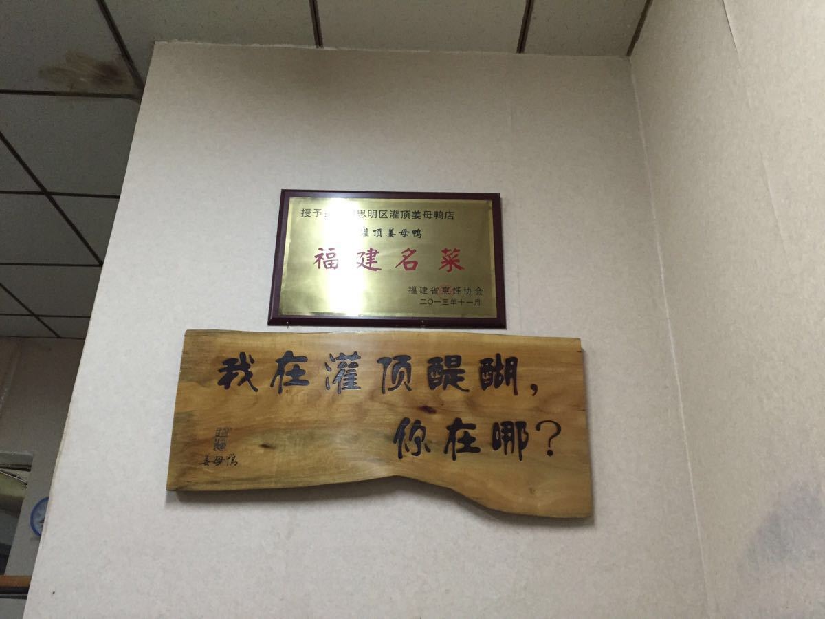 酒香不怕巷子深,还是专门找了一趟,为了品尝正宗的姜母鸭。果然没有失望,鸭肉很入味,那种鲜香难以形容。主角之一的姜片也可以很容易地入口。这家店虽小,可来头很大,不仅被评为福建名菜,而且有专门的淘宝店,不得不再次感叹下万能的淘宝。店老板阿姨看起来就很实诚,两个人半只鸭子够了,不然太腻。外加鸭胗和鸭心,一个绿叶菜,完美。