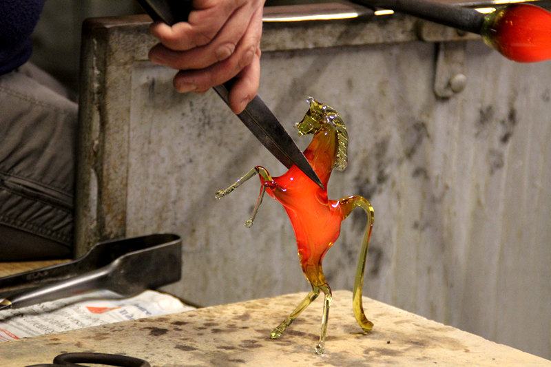 #2014.12欧洲7国游之意大利# 威尼斯的水晶玻璃工厂是作为一个景点参观的 其实就是购物点啦 导游带去的 先是参观玻璃水晶的制作 之后就是去购物区了 制作水晶玻璃的过程还蛮有趣的 看着师傅把毫无形状的玻璃拉来拉去的几下子 就变成了一匹骏马 真的很神奇 但是仅止于看看 价格有点小贵 虽然是手工制作