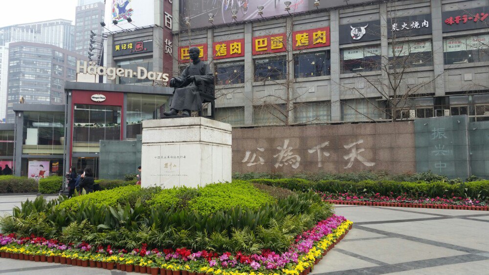 位于成都市的市中心------春熙路的中央,铜像不大,但是有历史纪念价值。
