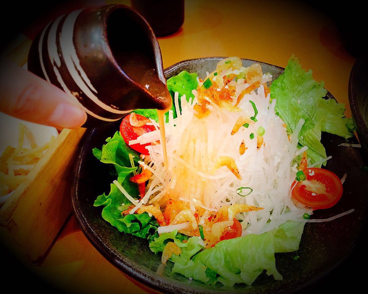 猪排套餐72元,含炸猪排、沙拉、米饭、汤,其中沙拉免费续,猪排用自己研磨的芝麻加上梅子味酱汁蘸着吃,梅子味酱汁很香。千层锦58元,春季新品,配上柠檬汁和专用酱汁,酸甜清香,把油炸的油腻感觉赶跑了,大爱,比猪排好吃。萝卜樱花虾沙拉25元,油炸的小虾很香,爽口沙拉。