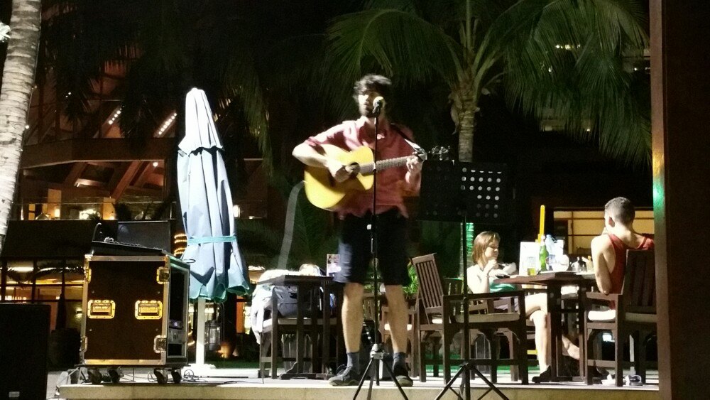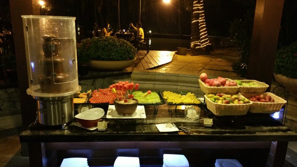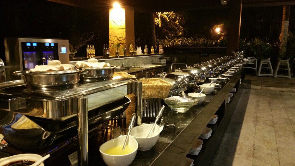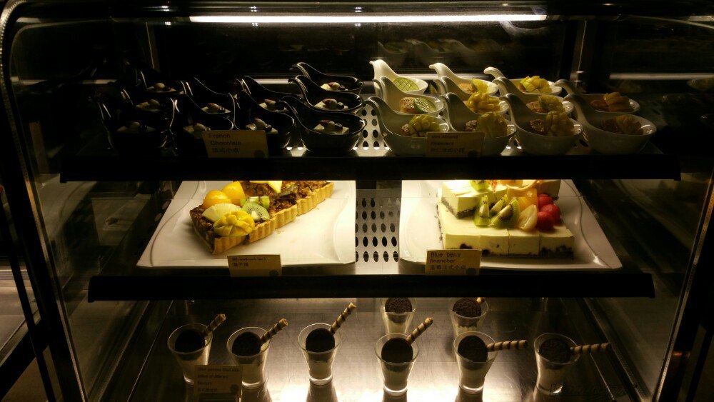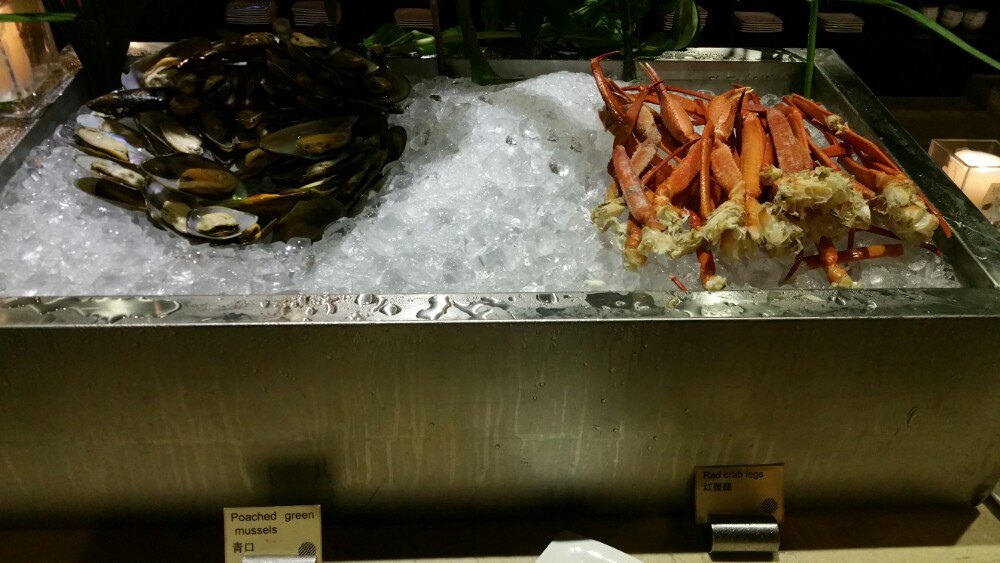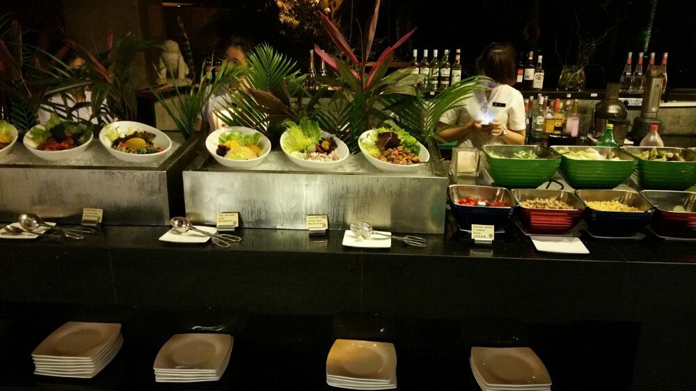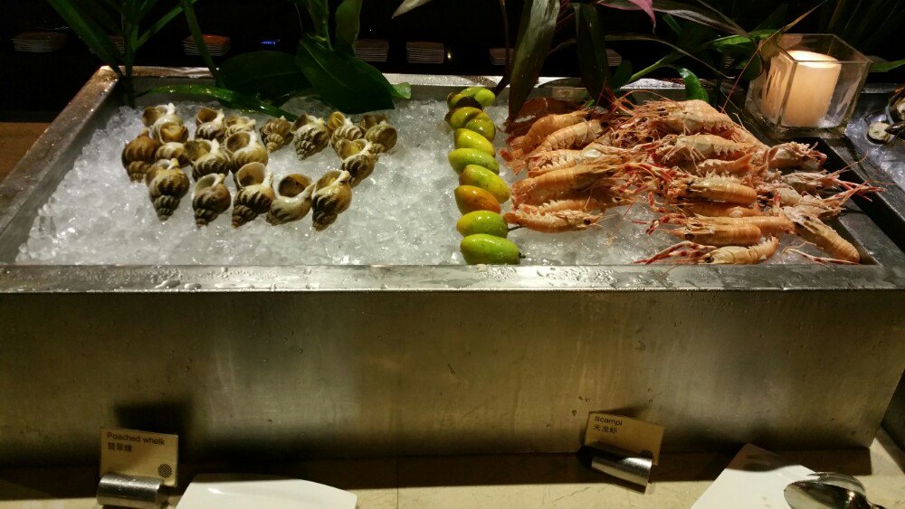 餐点的种类真的不多,看上去都挺精致的,口味中上,个人觉得甜点类的都满推荐的,不过畅饮的汽水都没汽,令人失望,海鲜部份是冰鲜的,女友表示一般,就翡翠螺比较好吃。整体环境很不错,尤其是现场驻唱的老外,唱歌轻柔浪漫,营造出的气氛相当舒服。本来以为他不会中文,结果忽然唱了首橄榄树,有些惊艳。推荐给有时间慢慢消磨,享受小资生活的人。