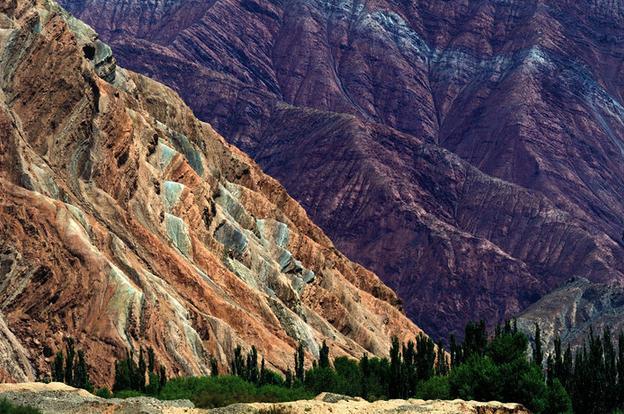 两座十分出名的大山,在这里交汇,一边是红色,一边是绿色,这里的景观十分独特