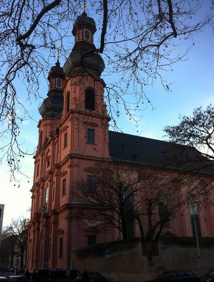 内部装饰金碧辉煌,很是精美华丽。位于莱茵河边,晴日风景不错。这座教堂以其装饰奢华的步道坛及圣坛而闻名于世。