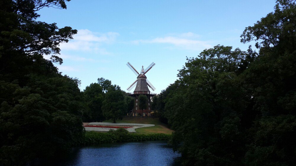 公园里有一个风车,应该是景点专用,离水面转远无实用功能。