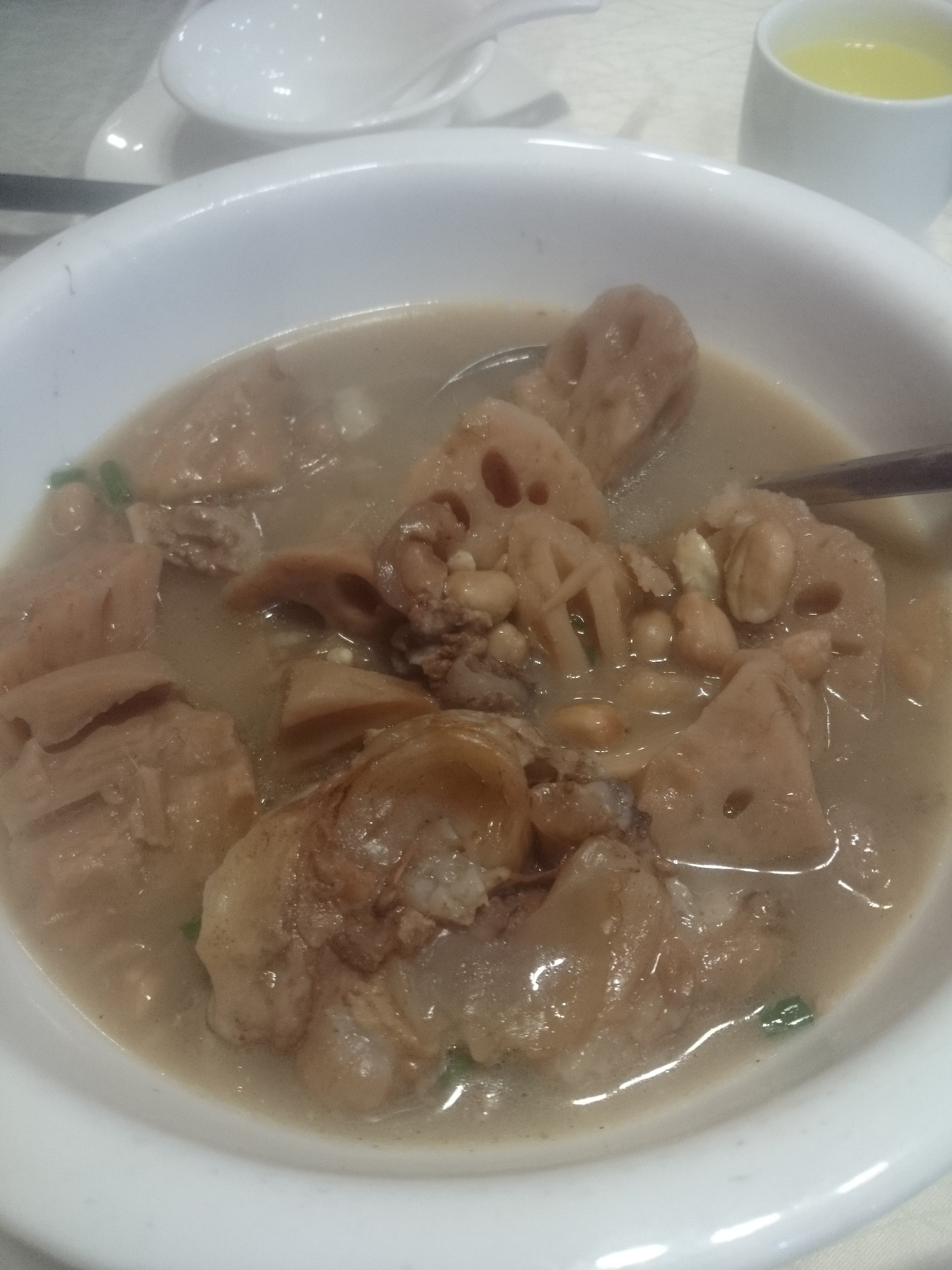 在番禺南村中华美食城,冲着常德菜来的,实在是太想吃辣了,可是最终这里的菜还是比较清淡,藕汤煮的藕是不错的,是粉藕煮软糯很好吃,土鸡钵里面鸡肉比较渣,好像炖久了一样没什么味道,攸县香干很小一盘,味道还不错,不过完全不辣,还有单品热销22元一份的葱油饼脆脆的都是油。吃完肚子饱了却完全不满足!