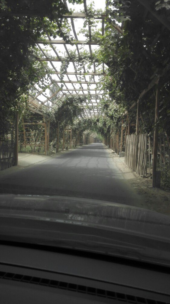 确实挺长的,都是各家各户自己种的葡萄,不过葡萄上有很多土。。路也比较窄。