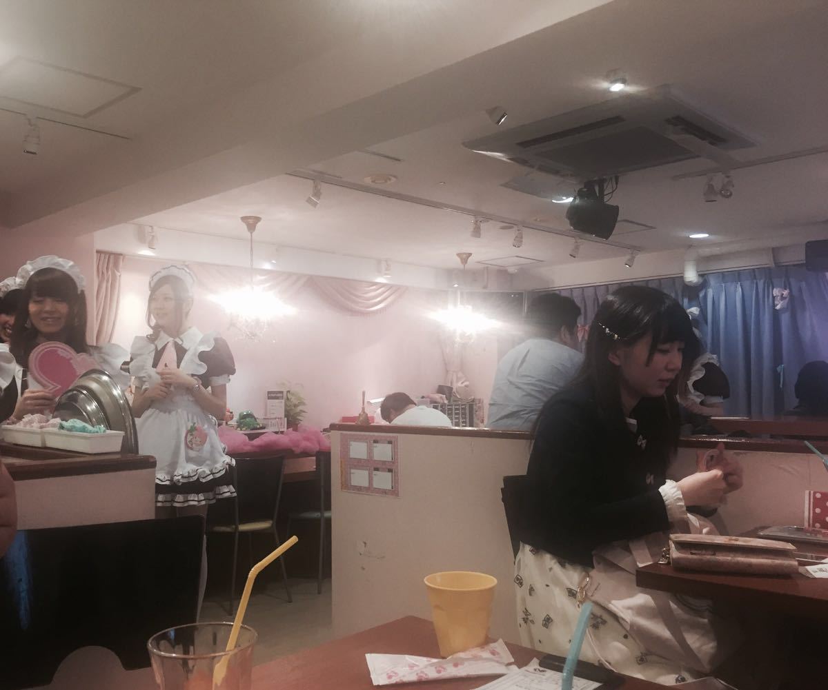楼比较旧 第一感觉有点low;不过进去之后还蛮有意思的。各种粉红,萌,卡哇伊风格。食物味道不怎么样。 主要也不是来吃东西的。日本本地的年轻初中高中男生比较多。拍照玩游戏的套餐都有。不能随便拍照 有专门的收费环节 吃东西前都有咒语和魔法 不得不跟女仆们互动。其实也不是每个服务员都好看