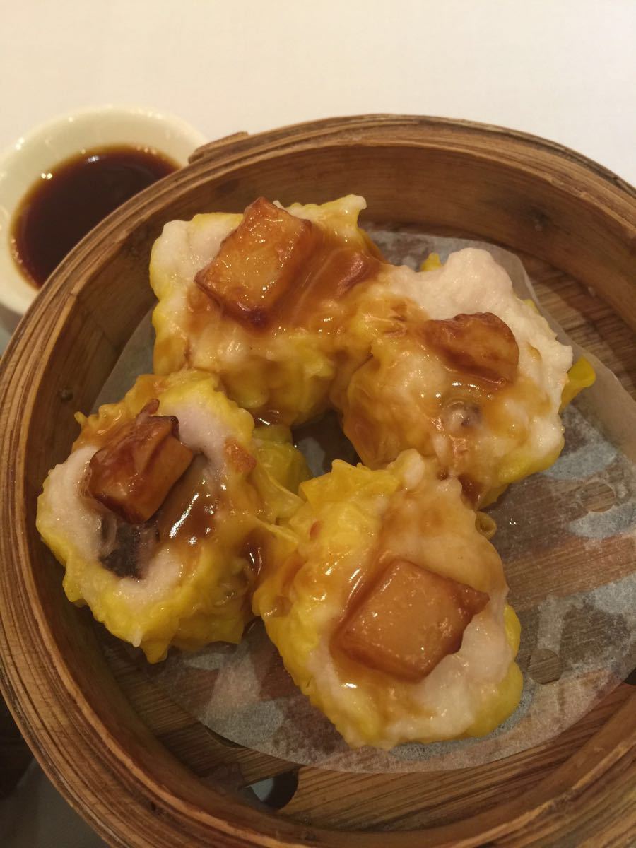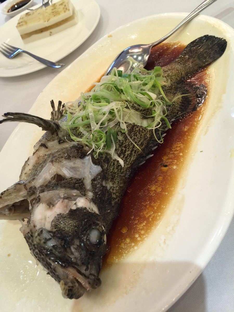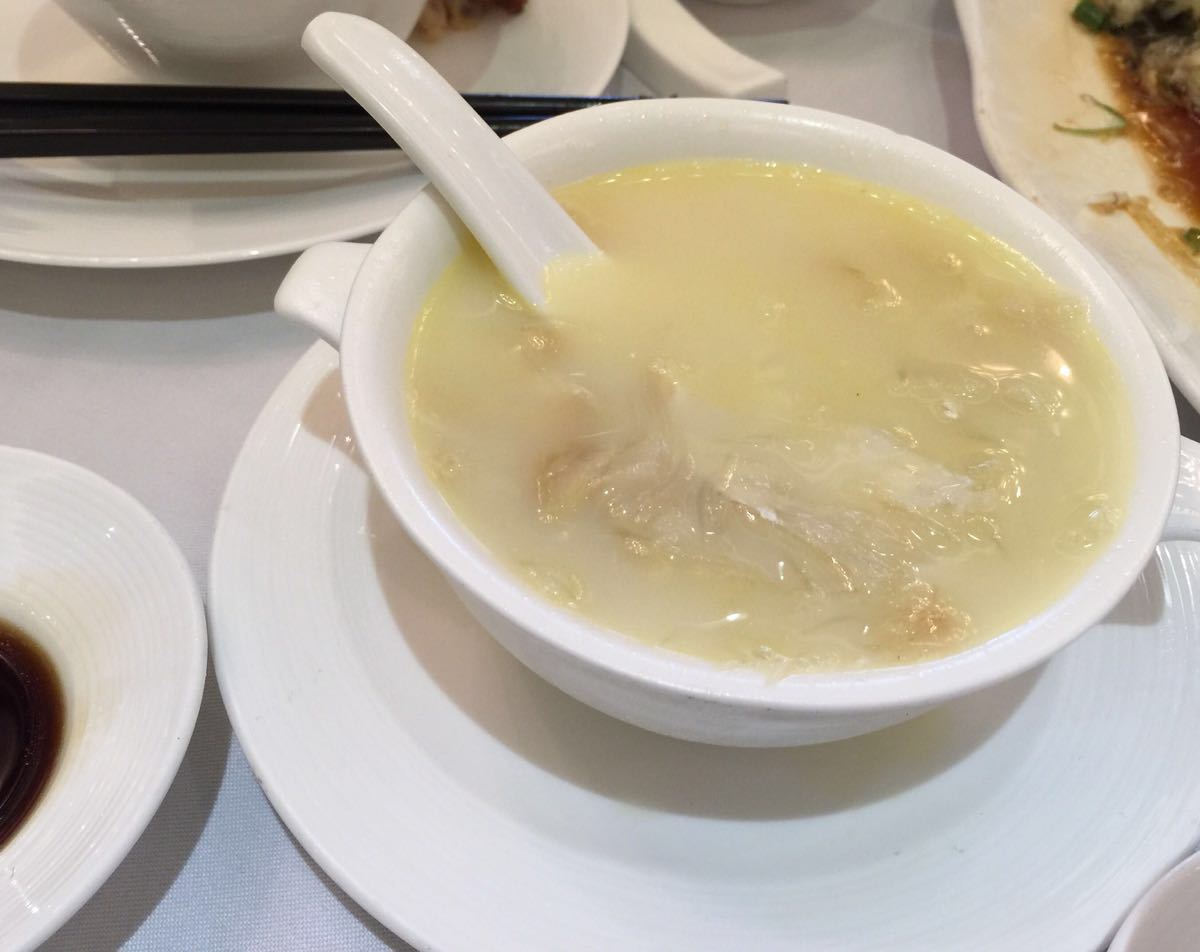 去凤城酒楼喝早茶的时候,偶尔看到的就上去逛了一下,决定明天的早餐就试一下这里了。他们家的早茶规矩跟凤城有些不一样,在中文12-30之前买单走人可以享受特价小、中、大点心,进去的时候没有留心招牌上的说明,所以没有享受到特价的优惠政策。不过话又说回来,点心味道真心的不错,鲍螺烧麦、椰汁桂花糕、蒸凤爪、荷香糯米鸡都是偶的最爱了,老公办完公事过来喝茶已经12:10了,所以又点他们家的特价海鲜清蒸沙巴老虎斑128港币一斤以上的鱼,个头大肉质Q弹新鲜肥美绝对的划算到家了。还有大碗翅一位58元港币真材实料的鱼翅不是假货冒充的。酒楼中午都是附近白领过来吃饭的比较多,早餐都是附近的住客为主,生意兴隆的很,下次去香港还是来这里喝早茶、吃晚餐。