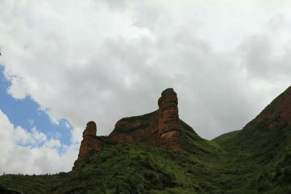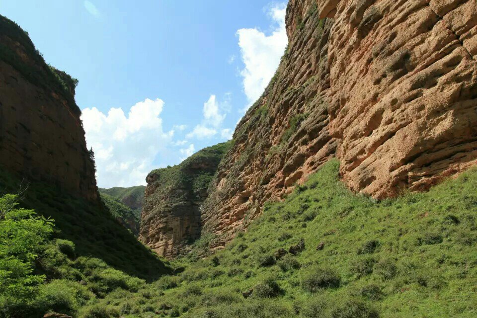是一条山间峡谷,典型的丹霞地貌,夏季碧草如茵,山花烂漫,赤壁如血,风景不错,就是晒晒晒!