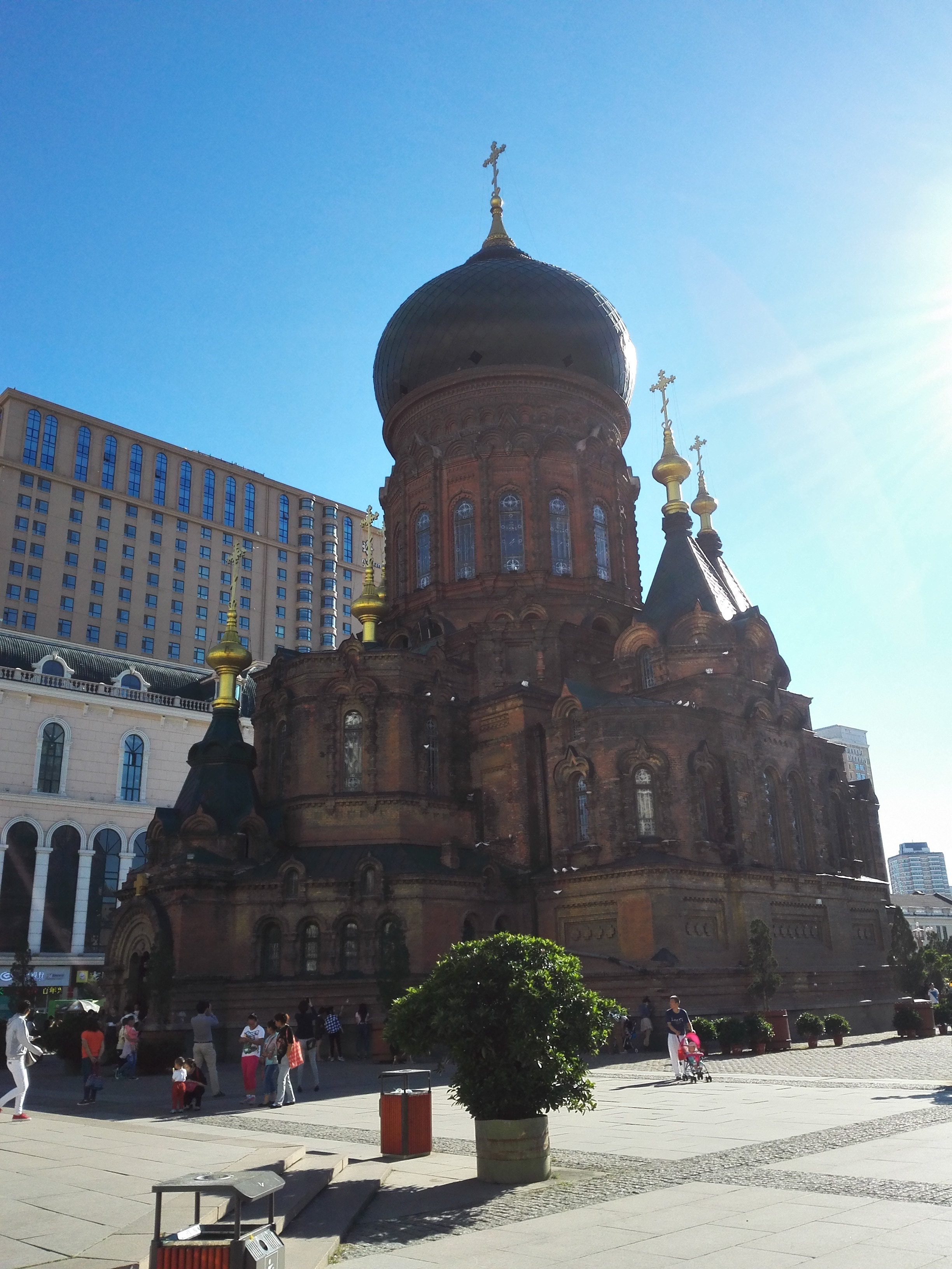 第一天到哈尔滨,因为住的地方离索菲亚教堂很近所以晚上出来吃饭的时候路过,正好赶上有音乐喷泉,不错不错,孩子很兴奋,看过喷泉去的老昌春饼吃饭,第二天下午正式来索菲亚教堂广场玩儿的,喂了鸽子,拍拍照片。