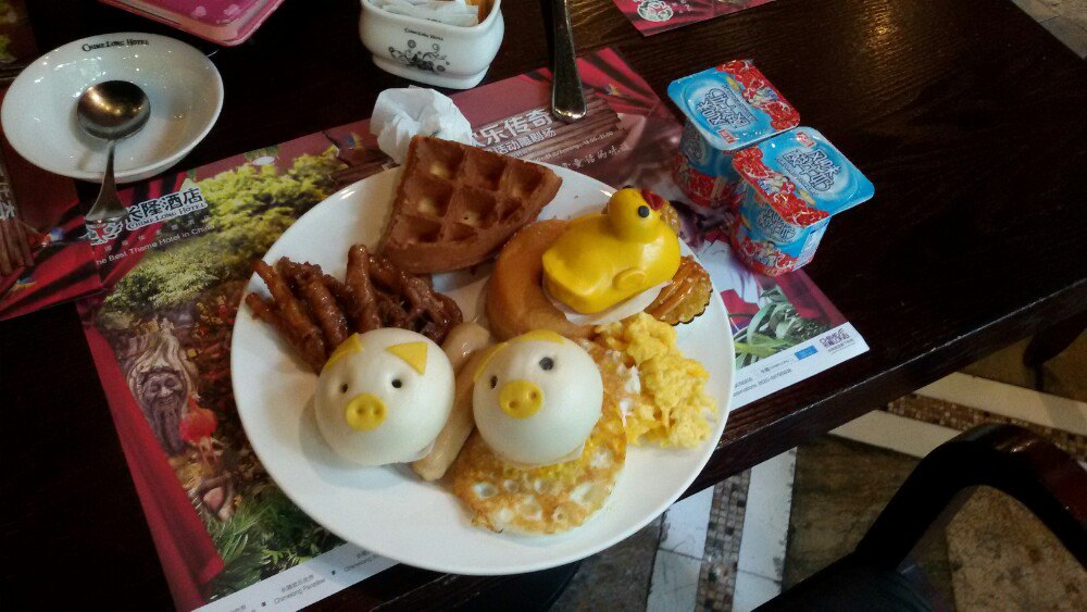 吃饭有两个时间点,7-9点,9点以后,选的7-9,八点多去,白虎那边的桌子都已经满了,火烈鸟这边还没人,因为孩子喜欢白虎,就一直在等位,因为人多,根本没好好吃东西,也因为时间的关系,匆匆吃完,9点前就有服务员来提醒到点了,出去时发现外面排了很长的队伍