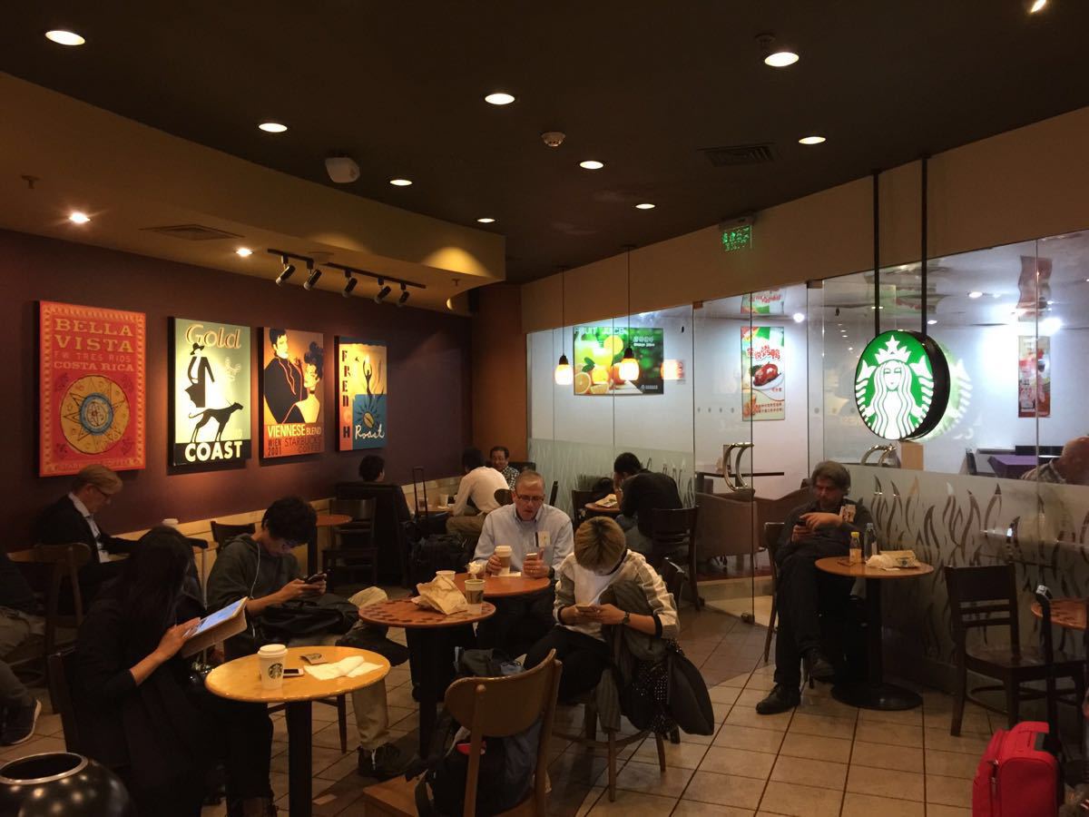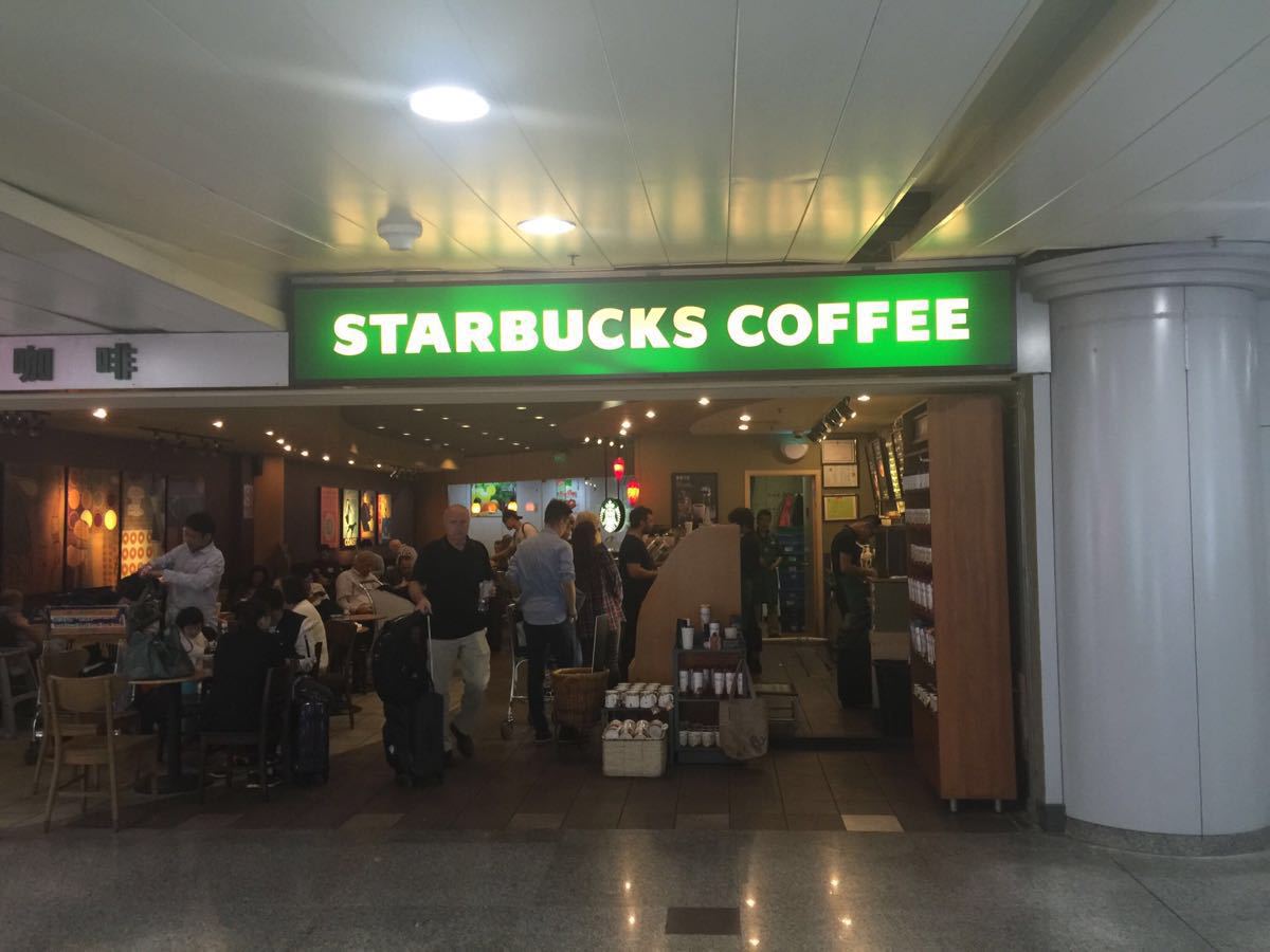 网友2015-10-16国际出发隔离区内,相对空一些,比安检外的星巴克好多了,可以坐下来慢慢品尝,休息休息国际出发隔离区内,相对空一些,比安检外的星巴克好多了,可以坐下来慢慢品尝,休息休息。价格与市内一致,这点好。