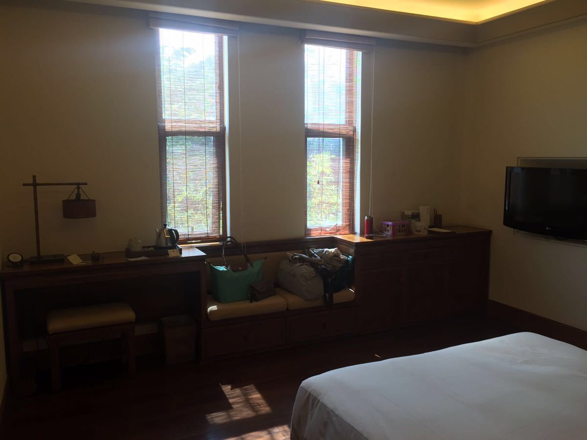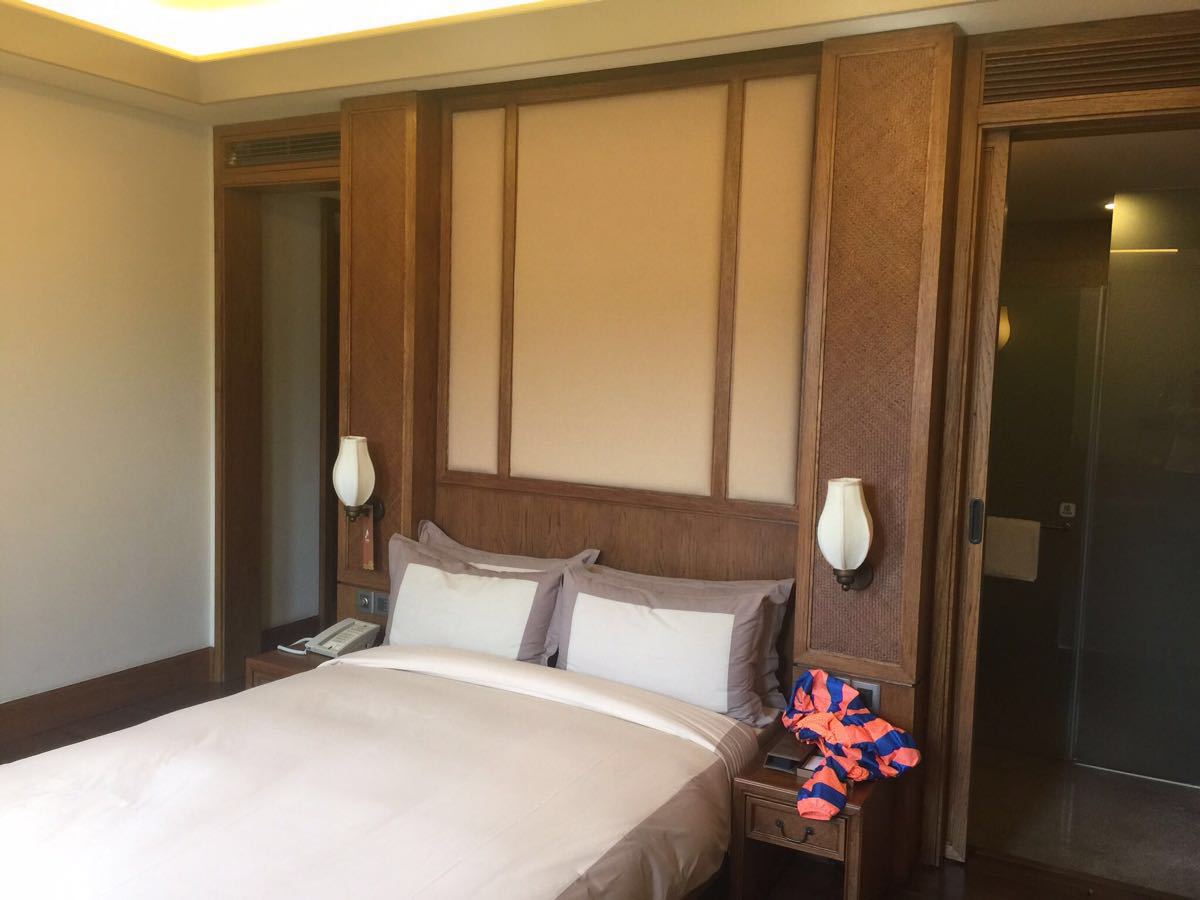 艺龙上订的房间,上海开车过去2.5个小时,到了酒店就感觉空气清新,空气中弥漫着浓浓的桂花香,让人身心愉悦,一扫疲惫。前台的接待态度很好,看见我们有两位老人,特意提醒我们房间内有两处台阶,要特别注意,不要被绊倒。在前台购买了灵山大佛的门票,120元走员工通道可以多次进出景区,很方便。酒店从进门开始就让人觉得充满禅意,房间布置很素雅,走廊、庭院、每一个小物件都透露出精舍的特有的味道。 说说不足处:1、床实在是太小了,双人床两个人睡有点挤,一晚上睡下来会觉得累;2、下水处理有问题,洗漱台这里会有臭味返上来;3、去的时候正好有团队入住,所以晚餐只有98/位的自助,不过菜品种类很少,只能说管饱,性价比较差,包括第二天的自助晚餐也是一样,品种少的可怜;4、特别指出餐厅服务员田倩倩(应该是这个名字),态度很差,一直绷着个脸,好像人家欠他钱一样,有个客人问了她两个菜是什么,直接硬邦邦的回答一句“上面有字”,搞得对方一脸尴尬。麻烦她把电视调大声一点,一句“等下旁边有活动”,那你让后面吃饭的人说话小声点啊,电视开着不就是给我们看的嘛,看电视影响还没开始的活动,大声喧哗就不影响了嘛!餐厅门口戴眼镜胖胖的迎宾态度就很好, 一样是餐厅服务员差距还真不是一点点啊!建议酒店好好培训一下再放出来,省的影响客人对酒店的整体形象。