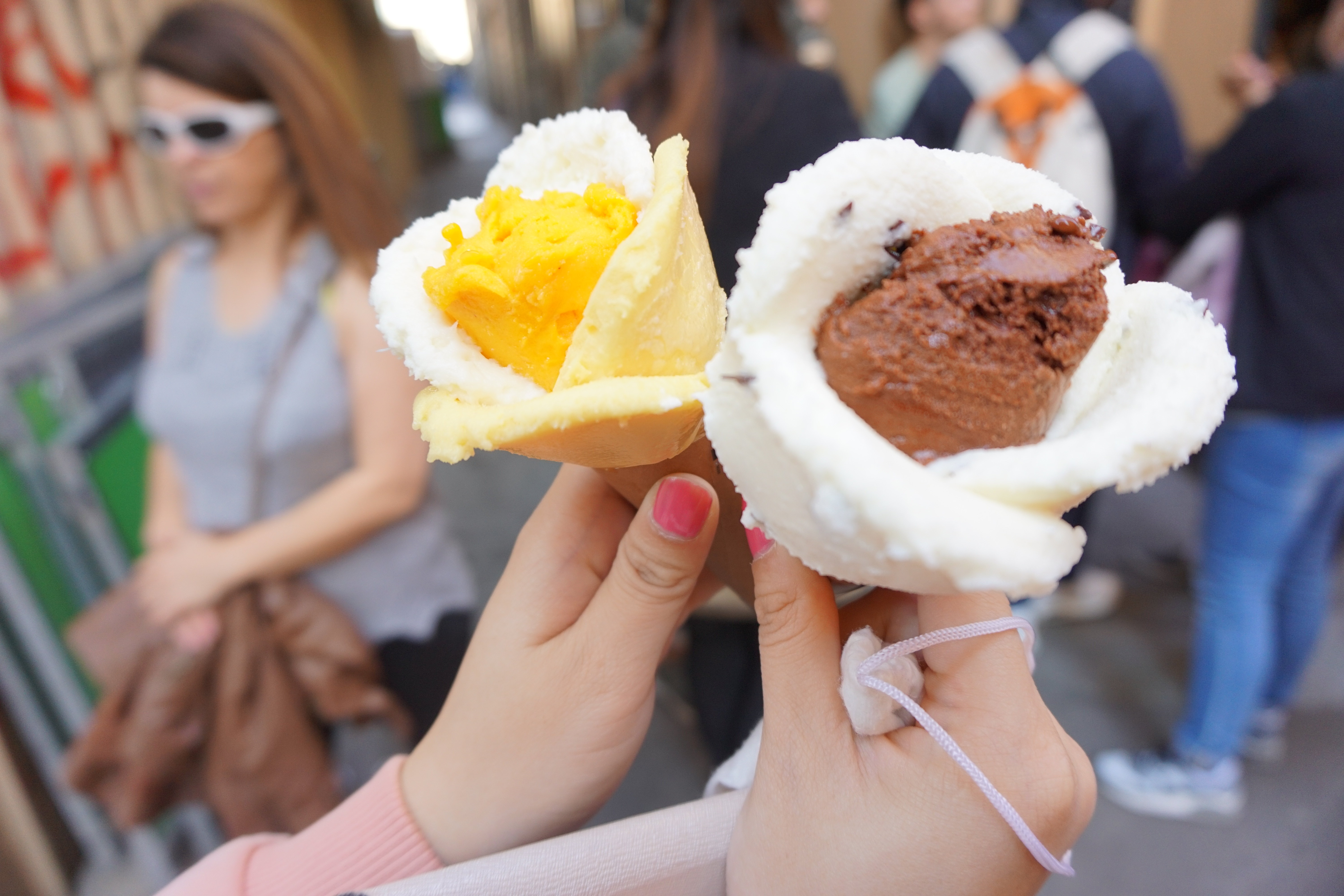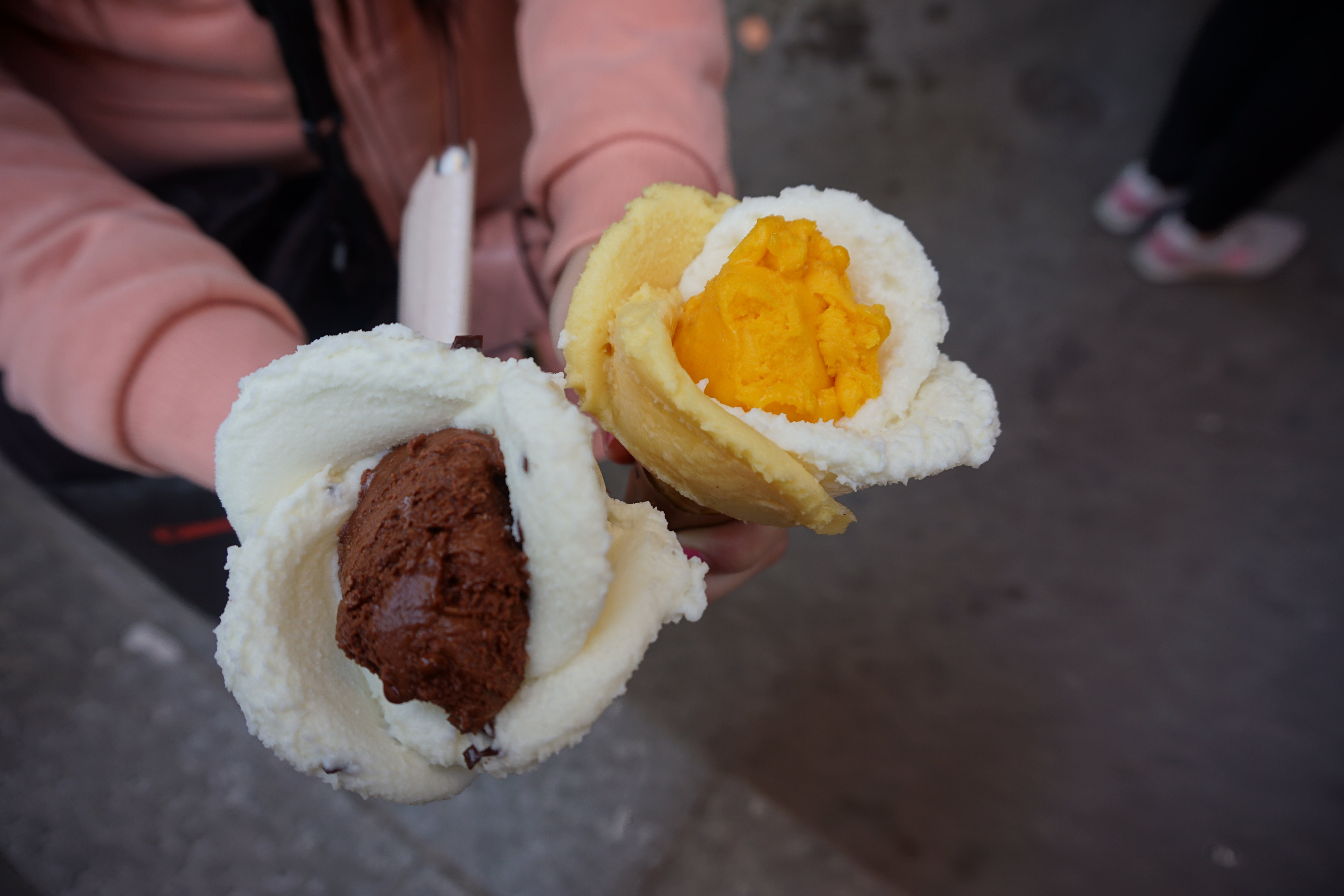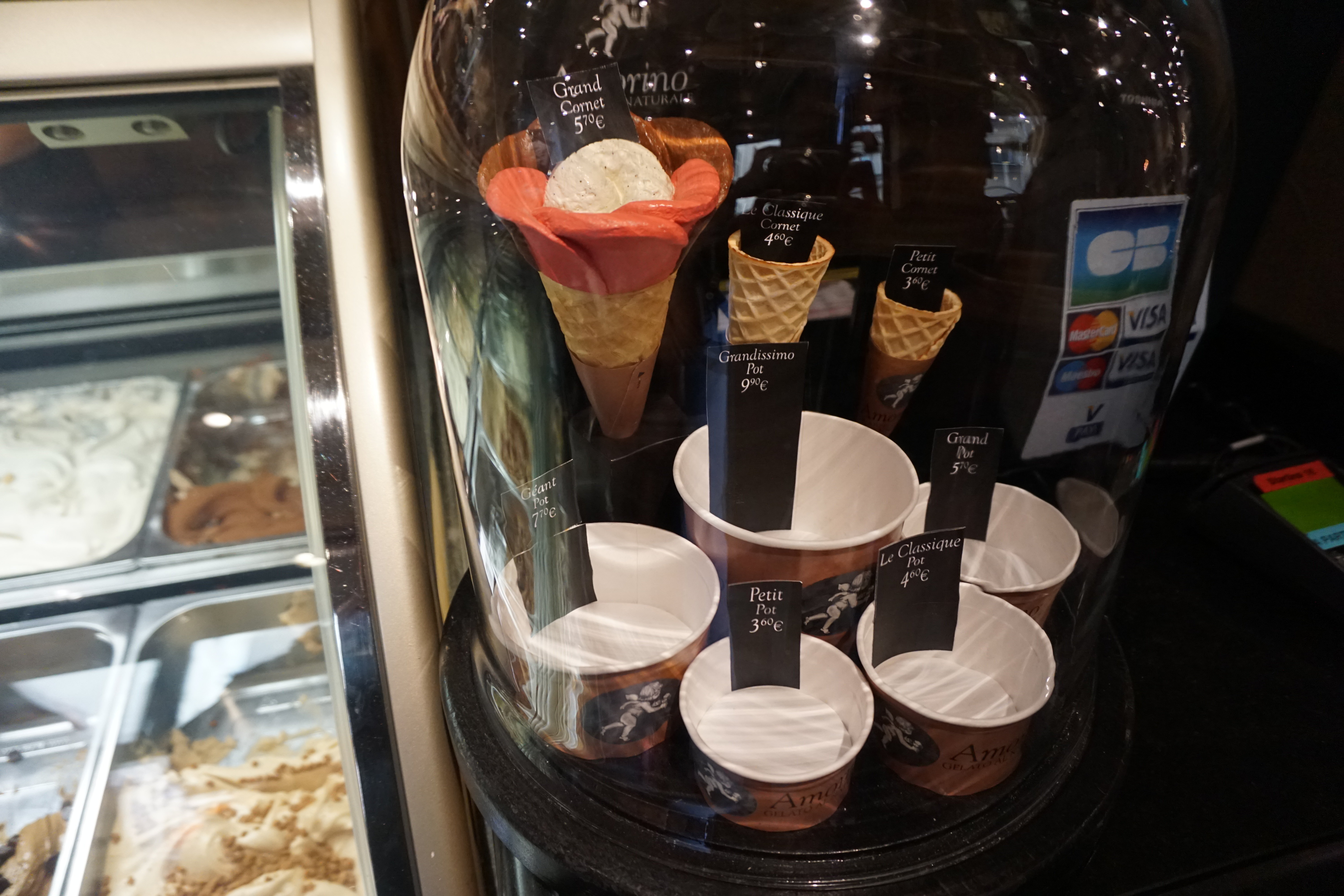 巴黎有很多小天使冰淇淋的分店,值得品尝哦这个冰激凌蛋筒的类型,店员会让你选择口味,而且可以同时选3个口味,做成花朵的形状,我选了椰子、百香果、芒果,水果味都很好吃,而且味道很纯正,大约3点几欧。巴黎有很多小天使冰淇淋的分店,值得品尝哦~