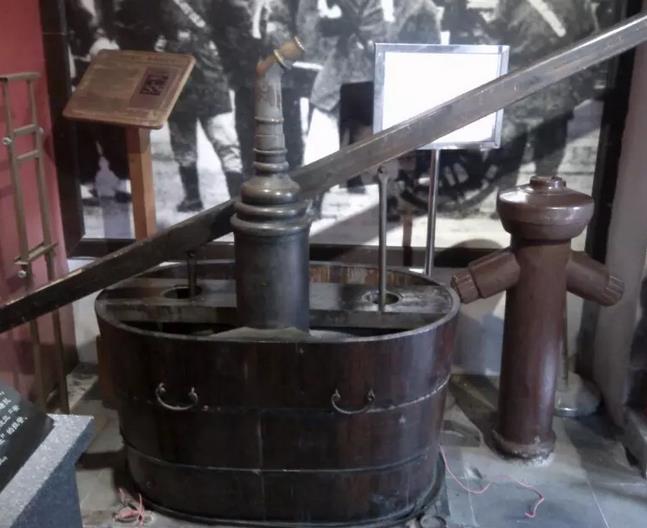 地处七里山塘最繁华的地段,楼上是展室,展示90年前的消防器材。