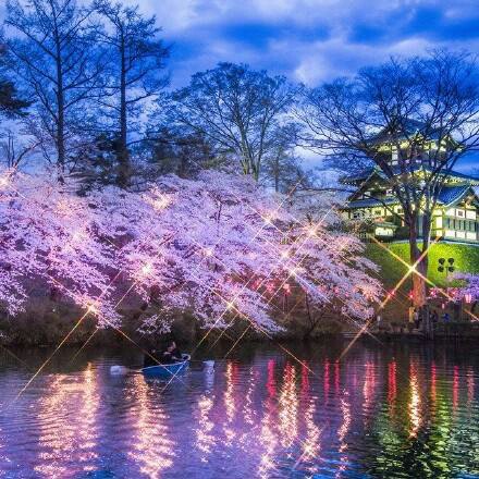 上越的高天公园,最有名的是樱花,夜里的樱花别有一番风情。