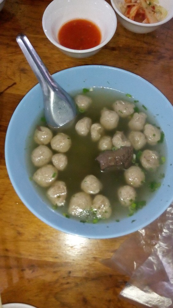网友2015-12-15锅贴(皮是鸡旦饼),牛肉丸(中间一大块牛血),油面不错,卤鸡爪也很香味道不错,环境尚可,算附近比较大的店,不过大部分店员听不懂国语(有些是外国人)。锅贴(皮是鸡旦饼),牛肉丸(中间一大块牛血),油面不错,卤鸡爪也很香。