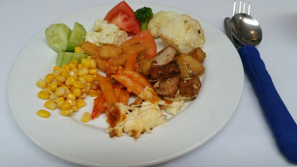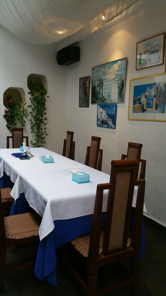 可以选择的菜品不是很多,额外点了一个各种烤肉的拼盘,放在好多石子上面,上面的薯条也很好吃装修的感觉很舒服,蓝白相间,店面不大,吃的是自助,味道不错!可以选择的菜品不是很多,额外点了一个各种烤肉的拼盘,放在好多石子上面,上面的薯条也很好吃!