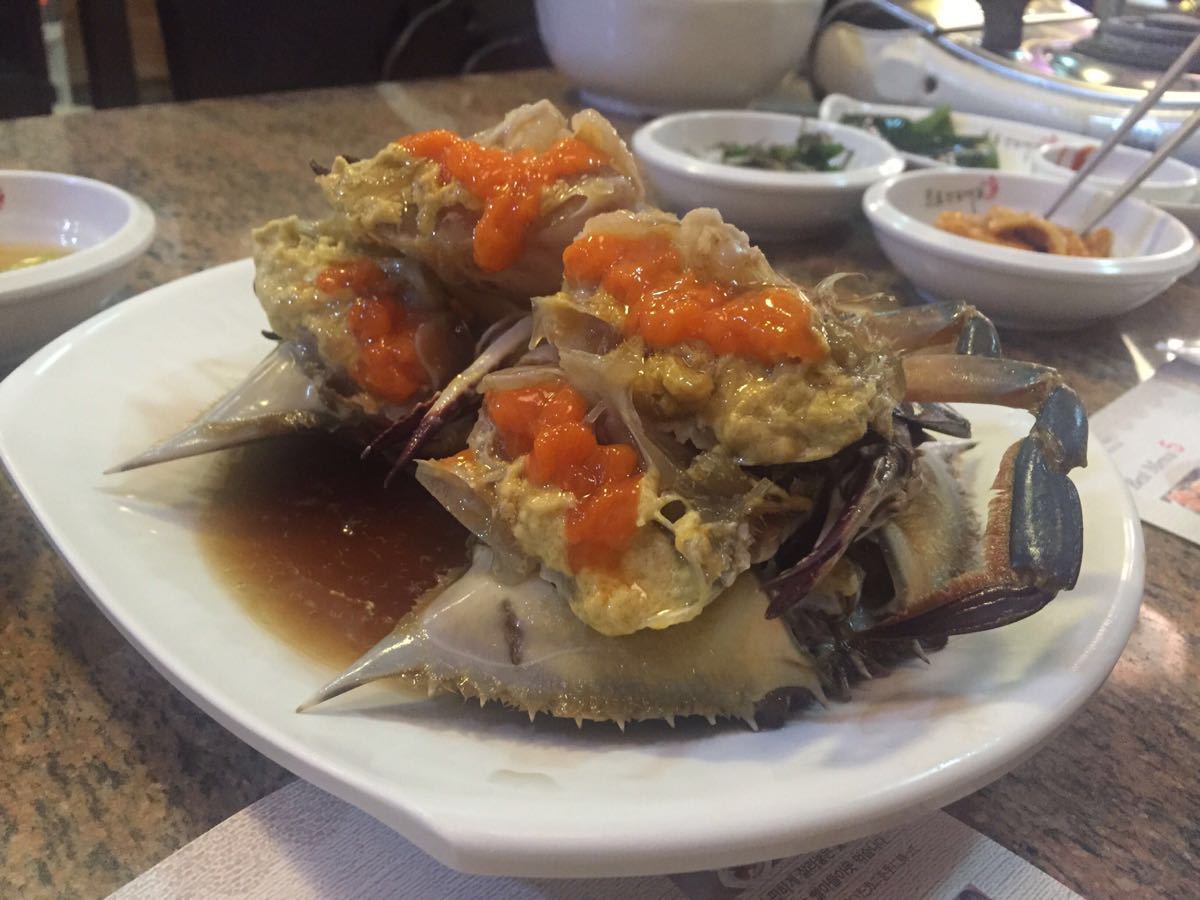 冬天去的,蟹自然很肥厚,2个人多点了,19万韩币,海鲜锅根本吃不完,服务大妈也不提醒