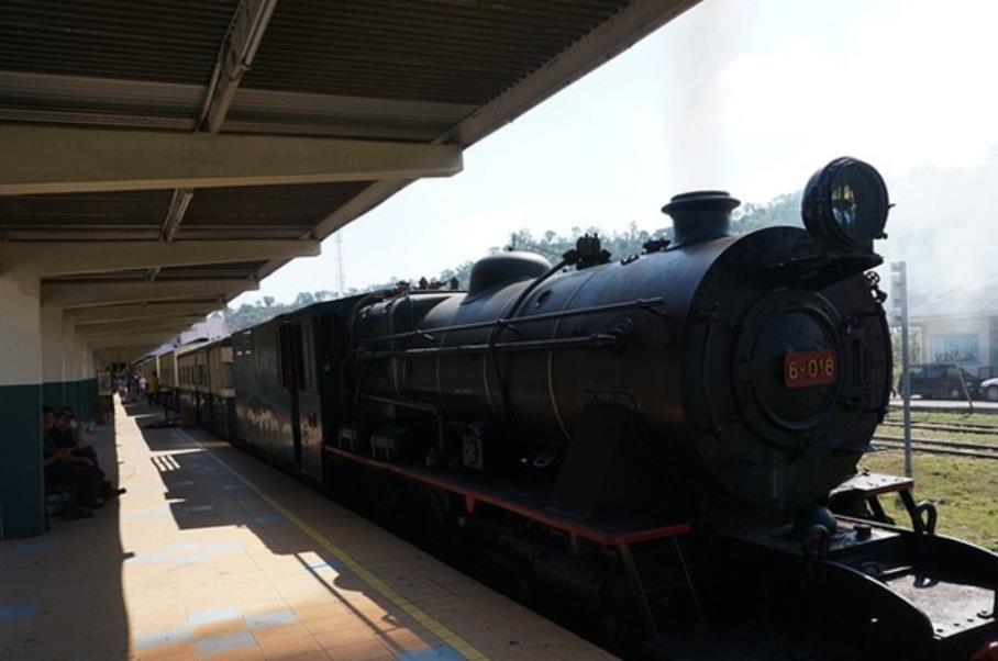 非常旧的火车,所以速度非常慢,但是正好可以欣赏沿途的风景其实这里就在廉价机场的旁边,丹绒亚路海滩的附近。非常旧的火车,所以速度非常慢,但是正好可以欣赏沿途的风景。也只有三五节车厢,车厢内部被布置成咖啡厅一样