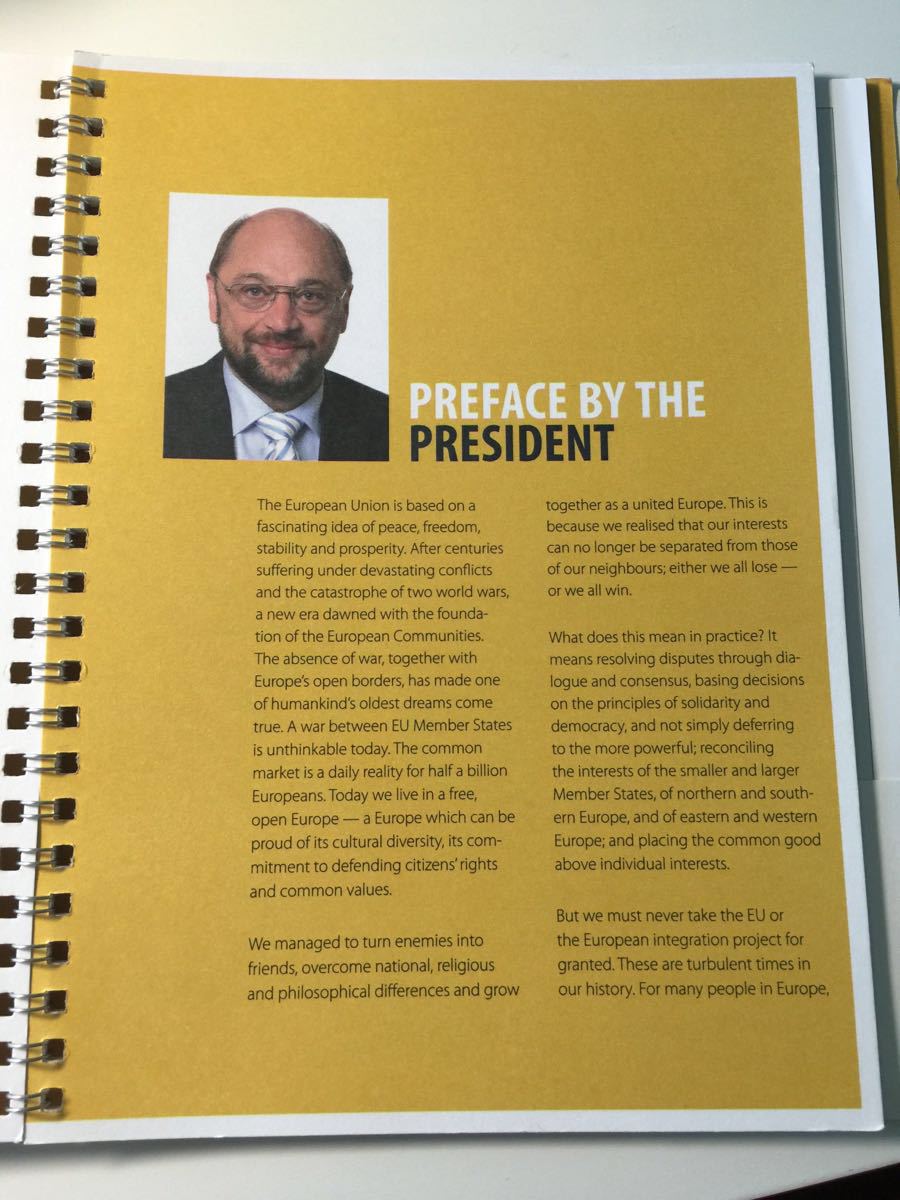 位于比利时首都布鲁塞尔的欧洲议会,是欧盟几大机构之一。每月在此召开两个半天的全体议员会议,现在的议长是德国人马丁.舒尔茨,他的真人版纸模型就在议会门口哦……这里更强调能源利用、环境保护、未来发展!能去参观并听了一天的课程,真是非常有意思的!