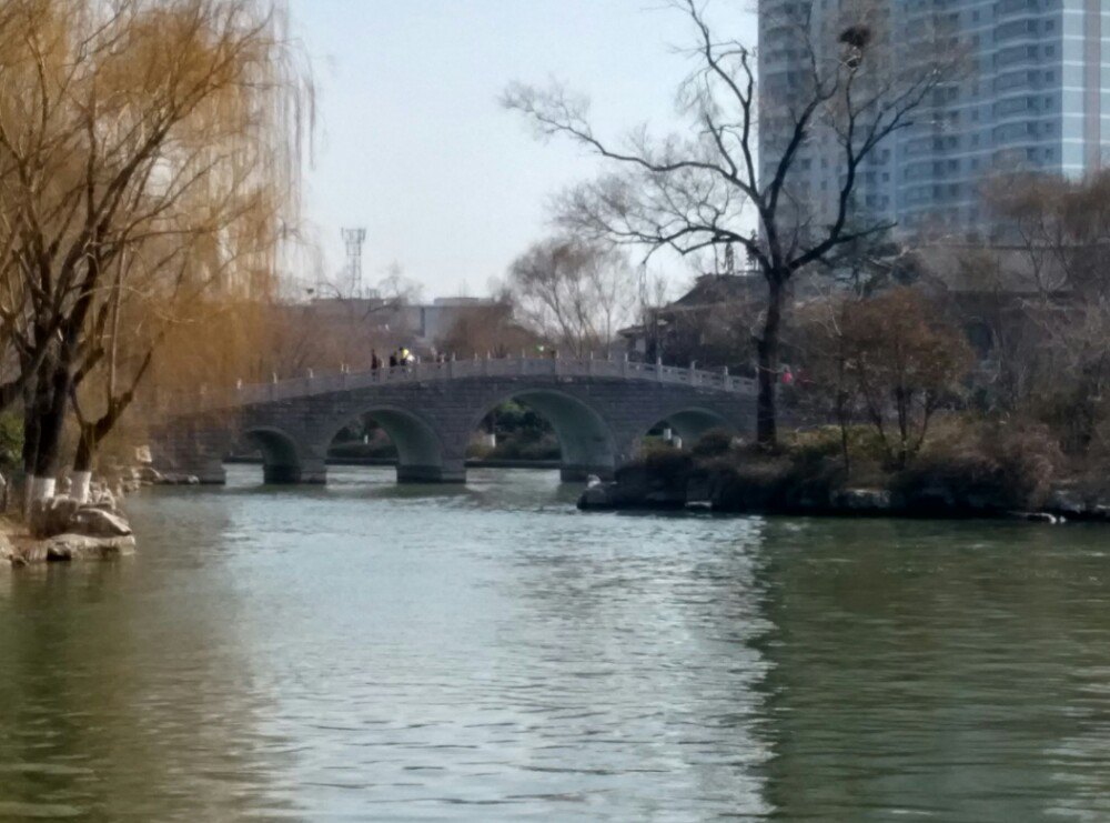 大明湖扩建修复的一个桥,和湖水相得益彰,值得一去。