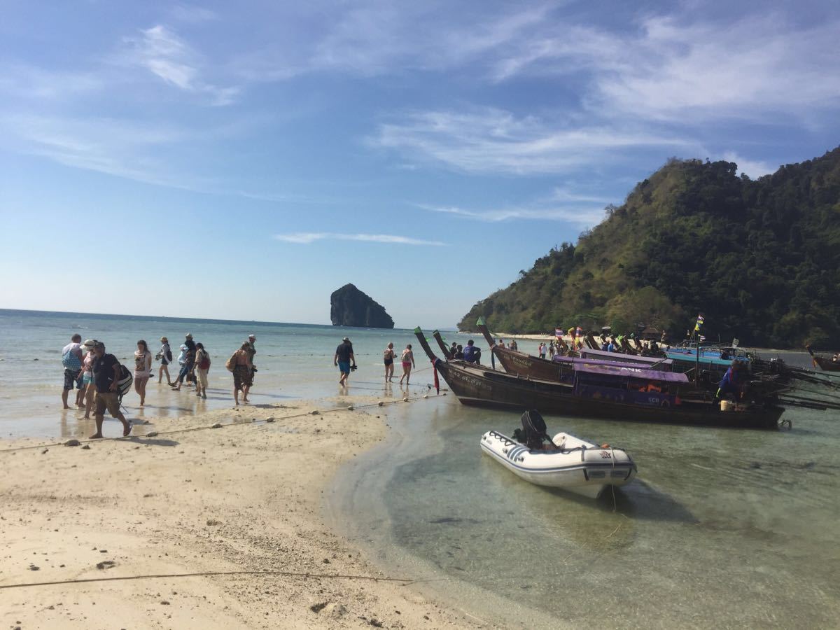 景色很美,人不太多,海水是蓝绿色的。深海里是深蓝色的。有4个岛屿相连。