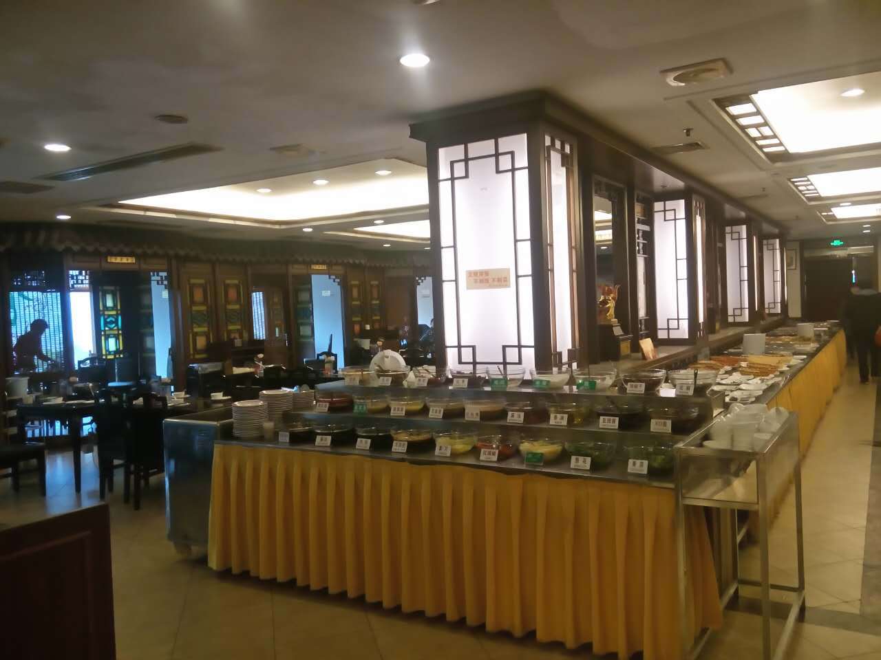 今天应小伙伴的邀请来到了位于晋江阳光路的这家爱了假日酒店2楼的自助餐厅吃午餐,虽然天气预报说今天会下雨,但是还是阻挡不了对于美食的向往。门口的停车位看起来好先进的,都是可以用电动吊上去的,这是我在其他地方没看到过的。然后我骑的是电动车,只要停在旁边就行了。有专门的停的地方。走到这里的门口就张贴着海报上写着的价格。然后他们的收费是这样子的,先进去吃,然后等吃完出来的时候再去前台结账。感觉这个也跟其他自助餐餐厅有所不同。走到大堂一看,是那种比较中国传统韵味的那种装饰风格。感觉这里是在吃早茶的地方. 然后看到有个火锅之后,感觉这种酒店的自助餐里面竟然还有火锅。怎么不改成火锅自助餐呢。不过里面的料还是挺多的,各种养生汤都有,有鸡汤,羊肉汤等,不过烧烤倒是没几样,他们的煎海蛎还菜头果还是挺好吃的,吃到最后他们的厨师说让我统统拿走,别不好意思了。然后我就毫不客气的,统统收刮走了。再来说说那个糕点,个人觉得那些糕点品种有点少了,就拿寿司来说,总的就那几样,还不超过十样。不过凉菜还有那个调料的品种也有蛮多的,然后就自己调了各种辣味的调料。整体来说,服务员的服务水平不是很差,态度也蛮客气的。虽然菜的整体水平还过得去,但是品种有点少了点。