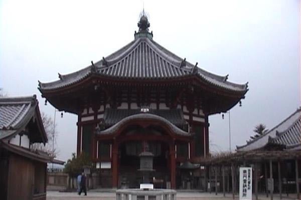 行基菩萨于养老5年建立的寺院。本堂和东大寺大佛殿非常相似,也被称为试建的大佛殿。