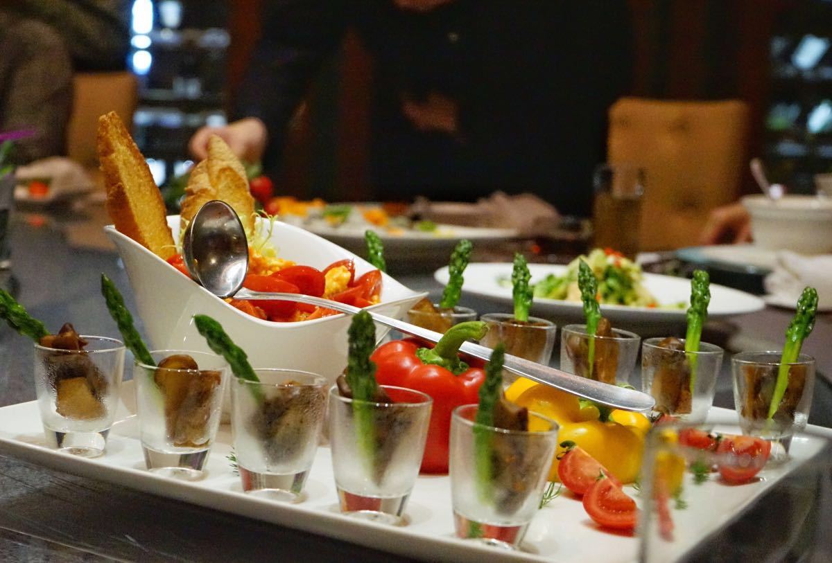 吃了五种味儿的螃蟹,清蒸,天麻酒蒸、青梅酒蒸抑、五香盐焗、泡椒焗,还是相当惊艳的,首先气势上就战胜了其他家。 488一位,螃蟹无限量,还包括开胃冰菜蟹冻沙拉、雪菇竹笙蟹清汤、香辣鸡脆骨,白灼芥兰,荷叶饭、三里人家黑糖桂圆姜茶、洛神花水果豆捞 新到任的江爵铭总厨厨艺了得,几乎道道极美。例如:菌皇养生汤,热情果水晶虾球,菠萝咕咾五花卷,春笋水饺 就是打车吧,绕